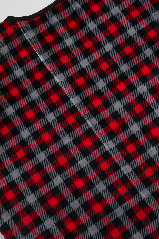 Брак принта на полотні, а також кривий шов внизу на кофті.
