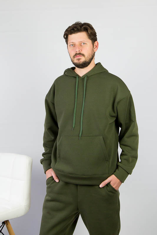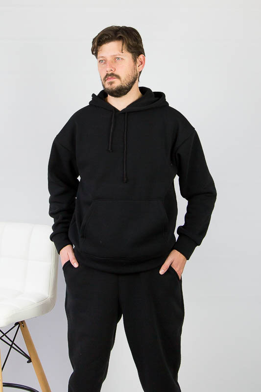 Чоловічий теплий костюм від ТМ «Гном» подарує Вам затишок та комфорт у холодну погоду. Об’ємний худі з місткою кишенею-кенгуру та зручним капюшоном відмінно поєднується з брюками на манжетах. Широкий пояс брюк доповнений шнурком для надійної посадки по фігурі. Модель пошита з щільної тринитки з начісом. Це тепле та м'яке трикотажне полотно з високим вмістом бавовни. Воно добре вбирає вологу і дає тілу можливість «дихати». Такий одяг не парить, а дарує тепло та відчуття затишку. Рекомендований догляд - це делікатне прання при температурі не більше 35°С, прасування тільки з лицьового боку.