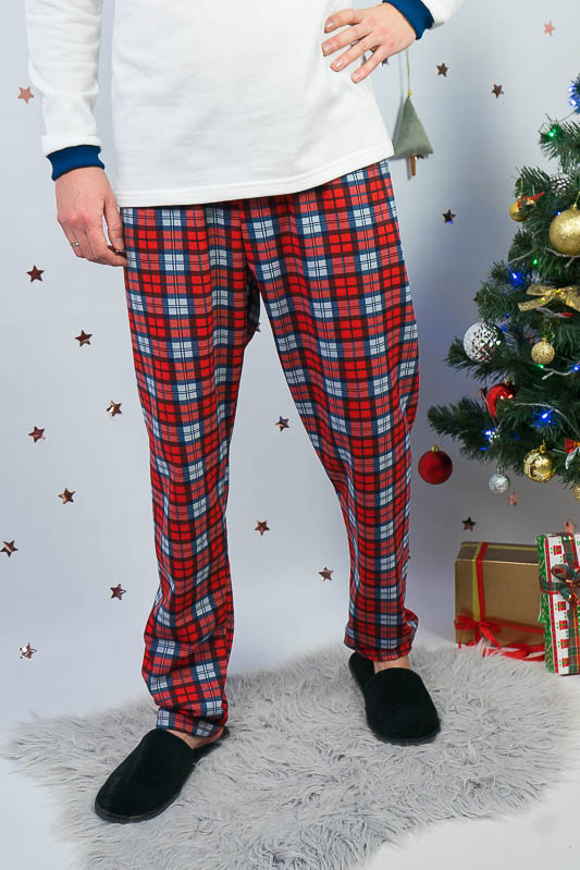 Тепла чоловіча піжама із колекції Family look сприяє повноцінному відпочинку та приємному сну. Вільний крій та обробка рукавів еластичними манжетами забеспечать комфорт та зручність. Поєднання однотонного та принтованого в клітинку трикотажного полотна з додаванням яскравого малюнку створять приємний святковий настрій. Сімейну колекцію доповнять моделі арт. 150-300-1266Ж, 300-1266П та 300-1266Д. Виготовлена піжама із начісного футера – матеріалу теплого та комфортного. Лицьова сторона такого полотна гладка та приємна, а з виворітного боку - теплий та м'який начіс. Начіс досить міцний, тому витримає будь-які навантаження, навіть найінтенсивніші рухи не викличуть зламів або складок на речах. Полотно стійке до появи затяжок та ковтунів. Вироби з такого матеріалу зручні, практичні та прослужать Вам дуже довго. Однак є деякі негативні моменти – матерія погано реагує на вплив прямих сонячних променів та високих температур під час прання. Тому, щоб виріб не дав усадку, прати його рекомендують за температури не вище 30°С. Прасувати треба з лицьової сторони.