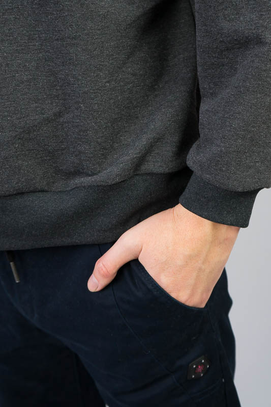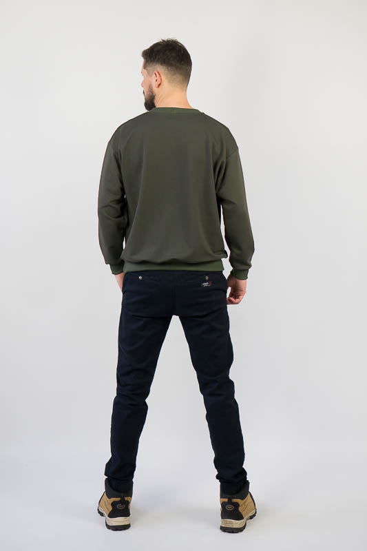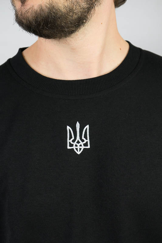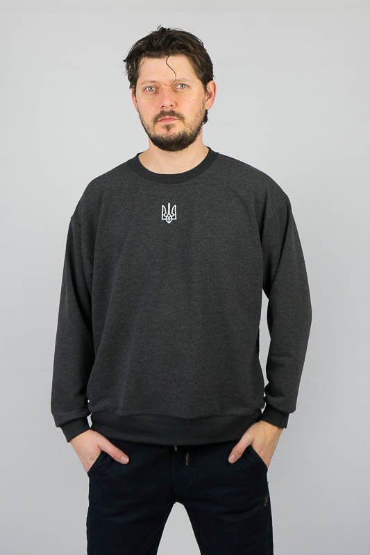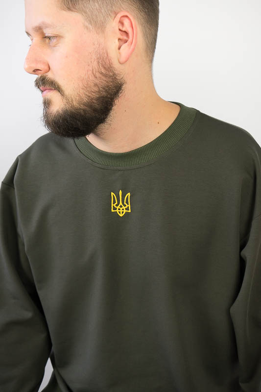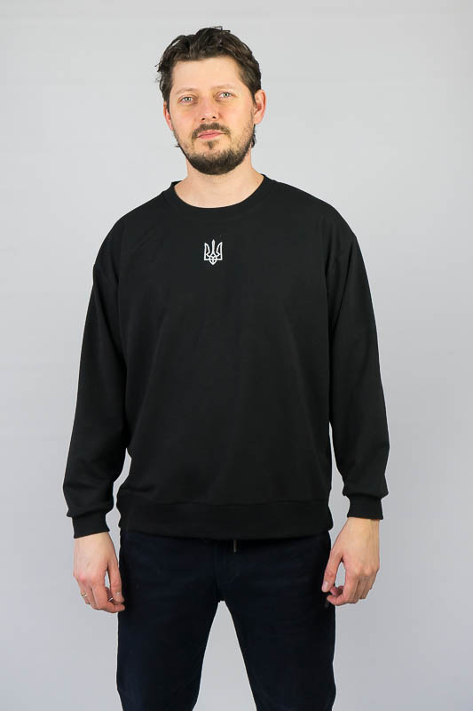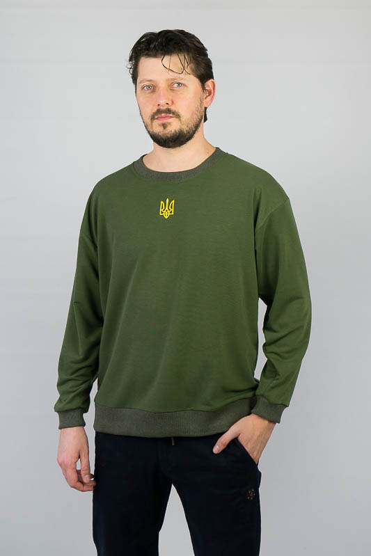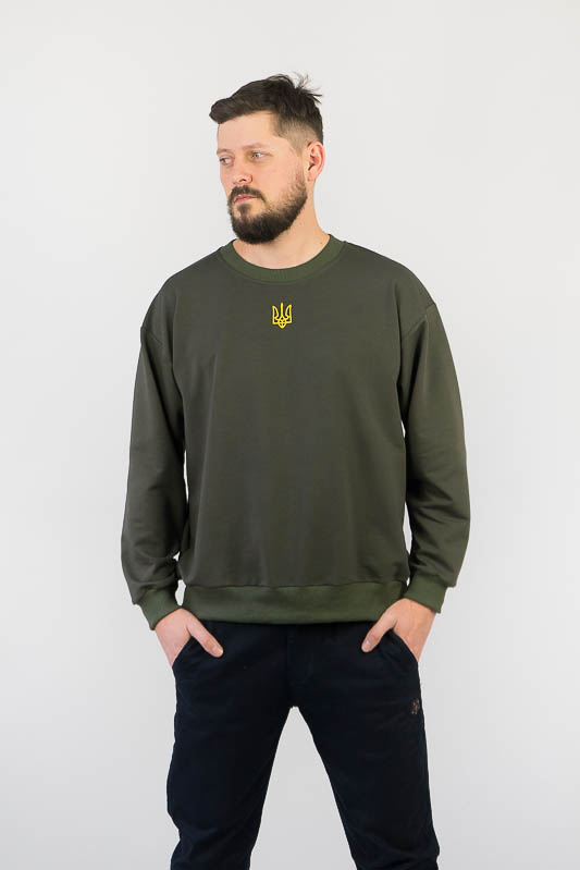 Однотонний світшот для чоловіків – практична річ для повсякденного використання. Вільний крій та легке відсилання до оверсайз формату, шляхом приспущеної лінії плеча, не сковує рухів та дає відчуття комфорту. Манжети по нижньому зрізу та на рукавах, виготовлені з м'якого еластичного матеріалу. Передня частина виробу прикрашена патріотичним вишитим малюнком. Виготовлено модель із трикотажного полотна – двунитка (85% бавовна, 15% еластан). Матеріал має позитивні споживчі якості: добре вбирає вологу; ефективно пропускає повітря; не утворює пилок (ковтунів); не витягується при носінні; простий у догляді. Світшот слід прати у теплій воді. Температури води, що дорівнює 30°C, буде достатньо для якісного прання матеріалу.