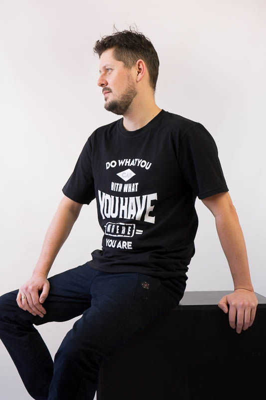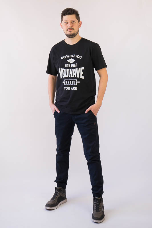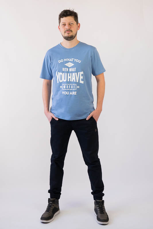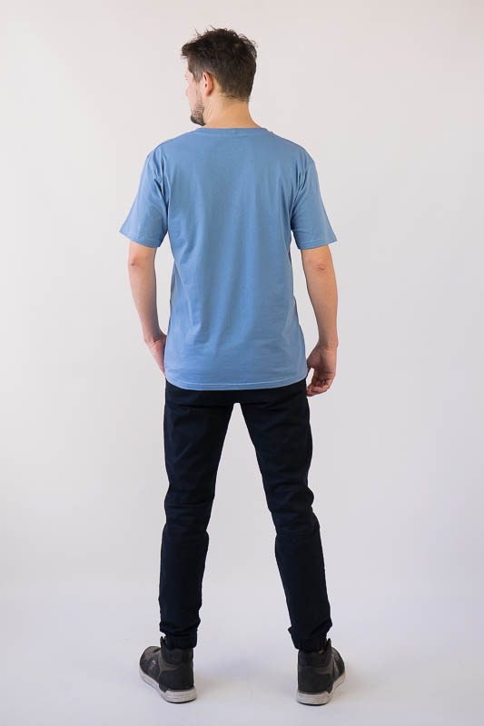 Зручна та легка чоловіча футболка. Передня частина моделі прикрашена малюнком. Виготовлена із тонкого трикотажного полотна – кулір, який добре вбирає вологу, не сідає, тримає форму, гіпоалергенний. Виріб рекомендується прати при температурі до 40°C у делікатному або ручному режимі, не використовувати відбілювачі або порошки з відбілювачами. Через наявність малюнка, прасувати рекомендуємо з виворітного боку.