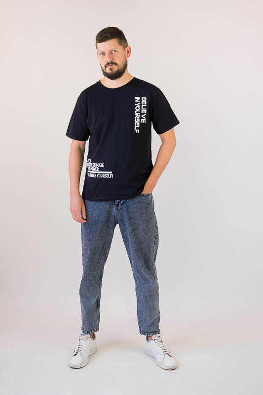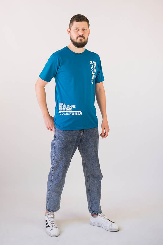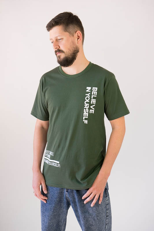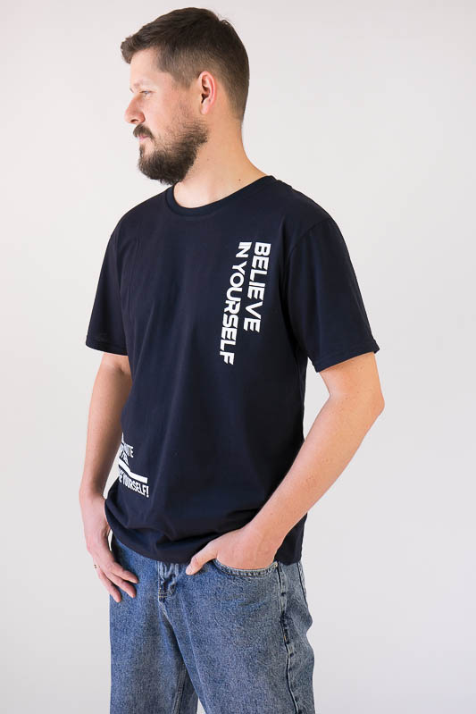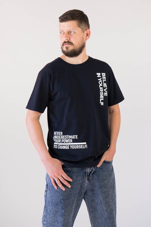 Зручна та легка чоловіча футболка. Передня частина моделі прикрашена малюнком. Виготовлена із тонкого трикотажного полотна – кулір, який добре вбирає вологу, не сідає, тримає форму, гіпоалергенний. Виріб рекомендується прати при температурі до 40°C у делікатному або ручному режимі, не використовувати відбілювачі або порошки з відбілювачами. Через наявність малюнка, прасувати рекомендуємо з виворітного боку.