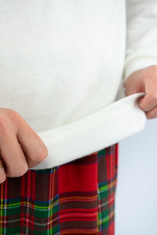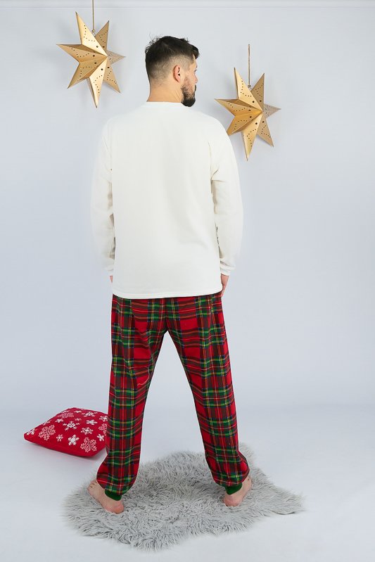 Тепла чоловіча піжама із колекції "Family look" сприяє повноцінному відпочинку та приємному сну. Вільний крій та обробка еластичними манжетами забезпечать комфорт та зручність. Поєднання однотонного та принтованого в клітинку трикотажного полотна з додаванням яскравого малюнку створять приємний святковий настрій. Сімейну колекцію доповнять моделі арт. 150-300-1269Ж, 300-1269П та 300-1269Д. Виготовлена піжама із начісного футера – матеріалу теплого та комфортного. Лицьова сторона такого полотна гладка і приємна, а з виворітного боку - теплий і м'який начос. Начос досить міцний, тому витримає будь-які навантаження, навіть найінтенсивніші рухи не викличуть зламів або складок на речах. Полотно стійке до появи затяжок та ковтунів. Вироби з такого матеріалу зручні, практичні та прослужать Вам дуже довго. Однак є деякі негативні моменти – матерія погано реагує на вплив прямих сонячних променів та високих температур під час прання. Тому, щоб виріб не дав усадку, прати його рекомендують за температури не вище 30°C. Прасувати треба з лицьової сторони.