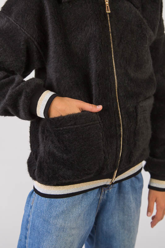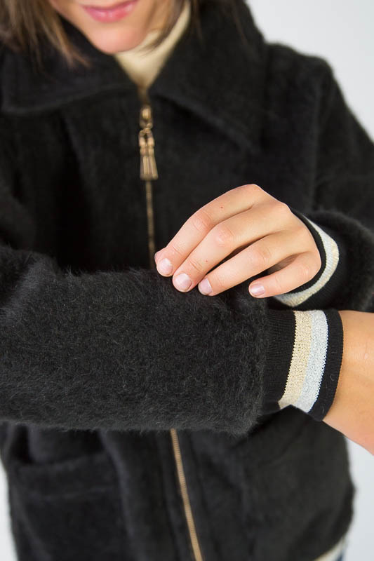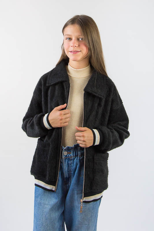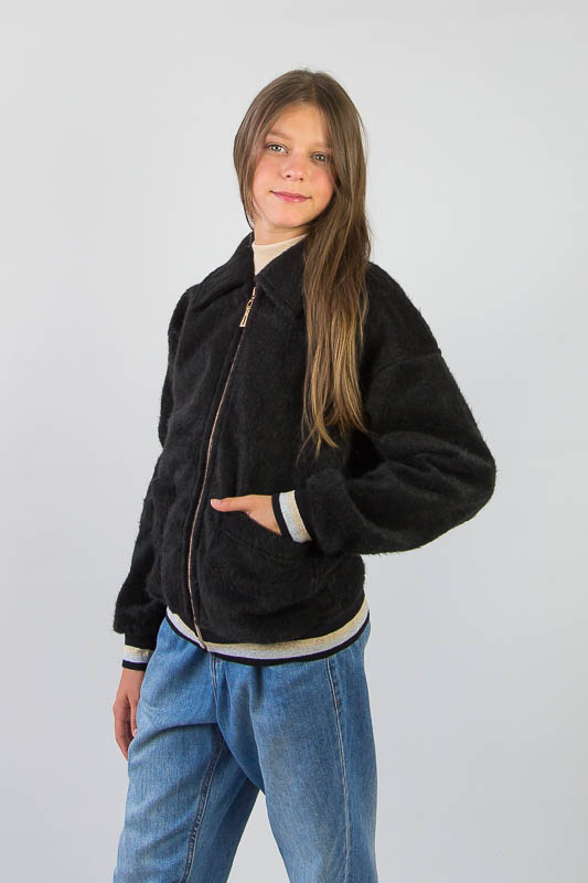 Бомбер - це модний предмет гардероба, який відрізняється укороченим фасоном, резинками внизу, комірі і манжетах. Однак популярність і мода постійно видозмінюють цей вид курточки, доповнюючи її різними деталями. ТМ «Гном» пропонує свій варіант демісезонного бомбера, виконаного з теплого ворсистого матеріалу. Класичний відкладний комір і накладні кишені вдало поєднуються з «золотою» блискавкою і еластичними манжетами з люрексом. Наш бомбер відмінно буде поєднуватися і в повсякденний, і в святковий образ. Курточка виготовлена з трикотажного полотна «Альпака». Це штучне коротковорсне хутро на трикотажній основі. Полотно має гарні теплопровідні властивості, міцнісь і гіпоалергенність. При цьому м'яке і легке. Рекомендований догляд: прання при температурі не більше 30 градусів в ручному режимі; НЕ віджимати, дати воді стекти; сушити на плічиках або на плоскій поверхні в розправленому стані; прасувати при необхідності з виворітного боку.