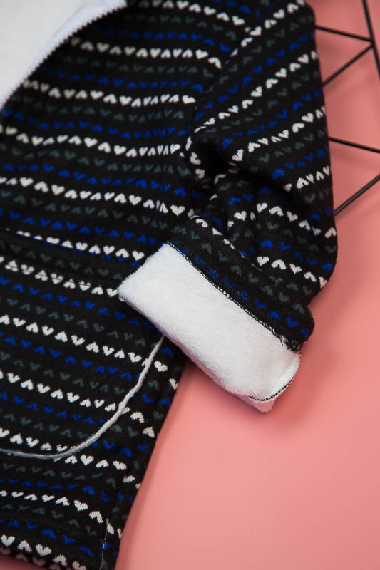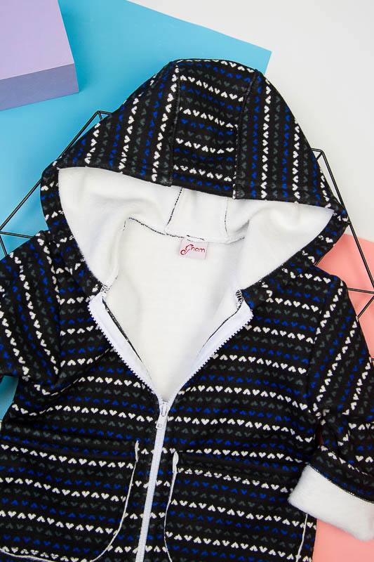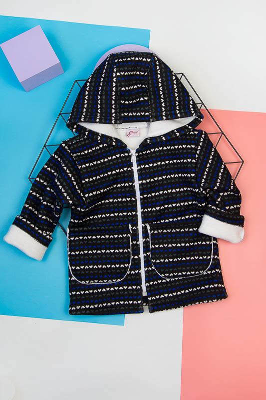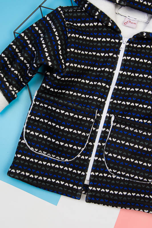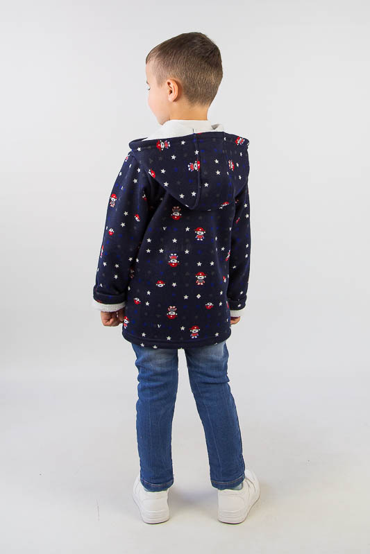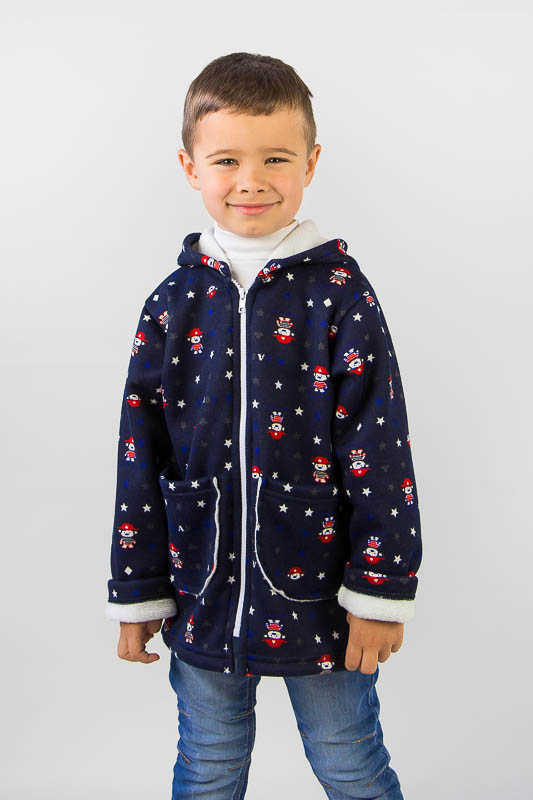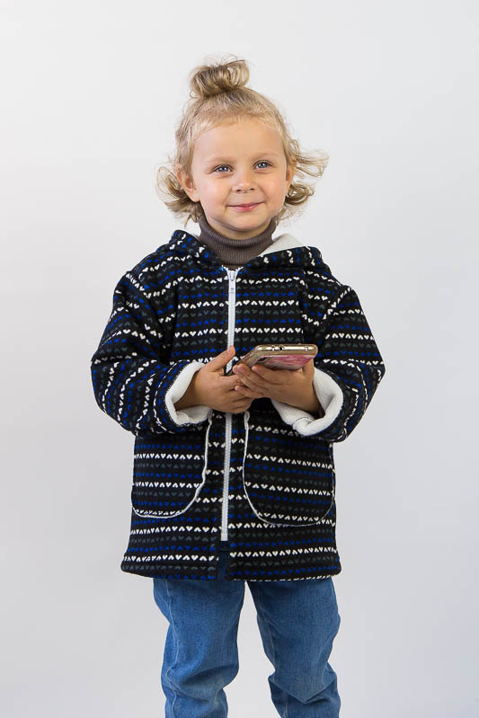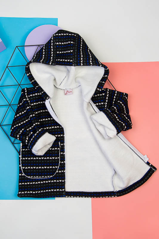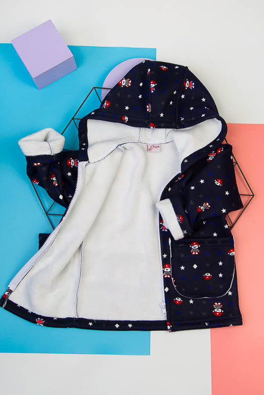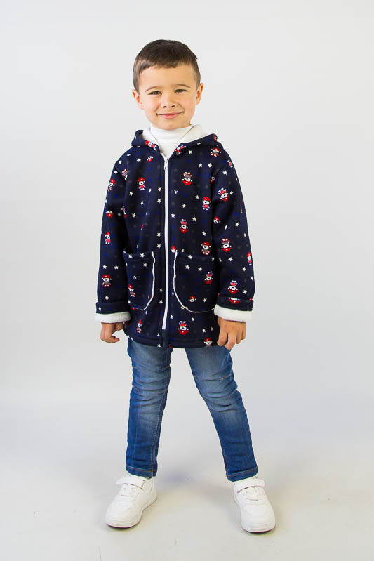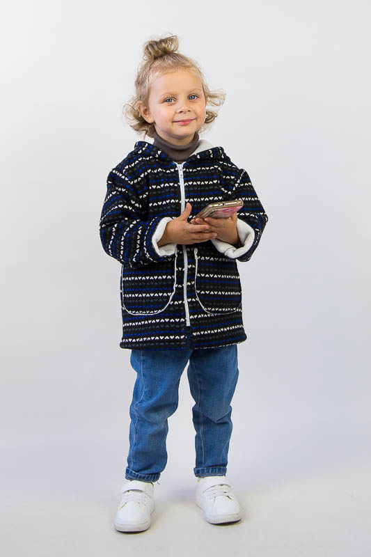 Подовжена модель від ТМ «Гном» виготовлена для дітлахів від 2-х до 5-ти років. Довжину рукавів можно регулювати відворотами. Класичний прямий крой, доповнений великими накладними кишенями, зручним капюшоном та застібкою на блискавці, чудово поєднується з довжиною моделі, що скоріше нагадує напівпальто. Куртка виготовлена із м'якого трикотажного полотна – ангора на хутрі. Це двошаровий матеріал, що складається з гладкого верхнього шару – ангори (вовна (45%), віскоза (35%), поліестер (20%)) та виворітного – штучного коротковорсового хутра. Найчастіше ангора на хутрі використовується при пошитті осінньо-зимового одягу. Рекомендується делікатне прання у теплій воді.