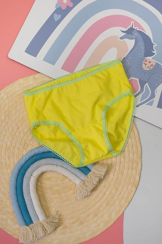 Труси для дівчинки виготовлені із трикотажного полотна кулір. Це 100% бавовна. Гладка поверхня полотна робить виріб приємним до тіла. Гігроскопічність полотна дозволяє з комфортом носити вироби в спекотну пору року, а повітропроникність забезпечує нормальну терморегуляцію тіла. Так само полотно є антиалергенним, що є незамінним для дитячої білизни. Ніжки та верх трусиків оброблені яскравою еластичною резинкою. Комфортна та гарна білизна, найкращий вибір для дівчаток.