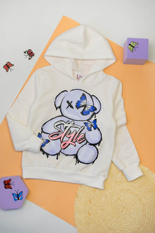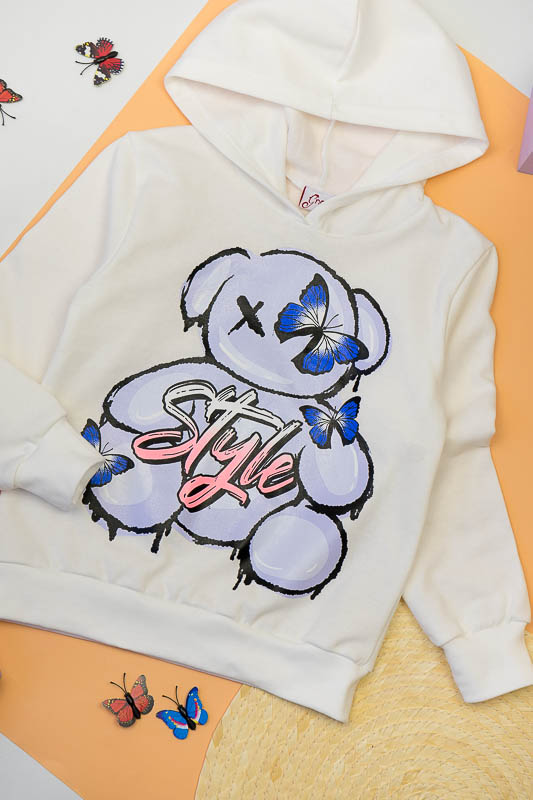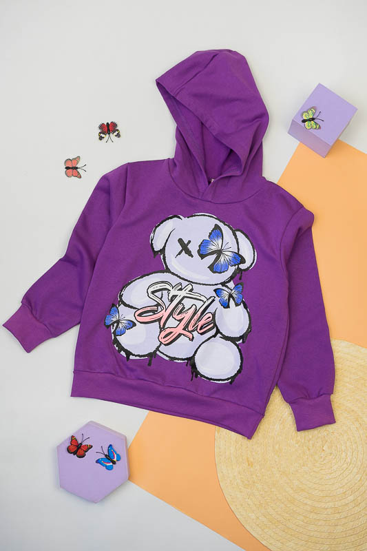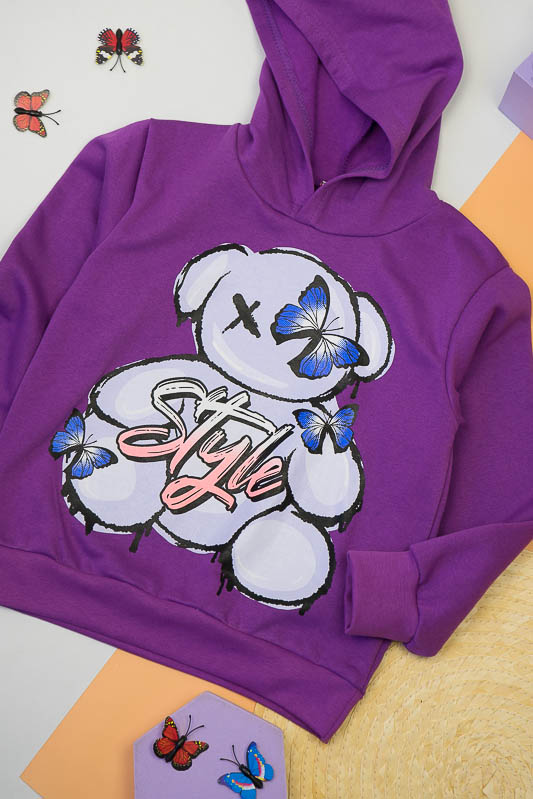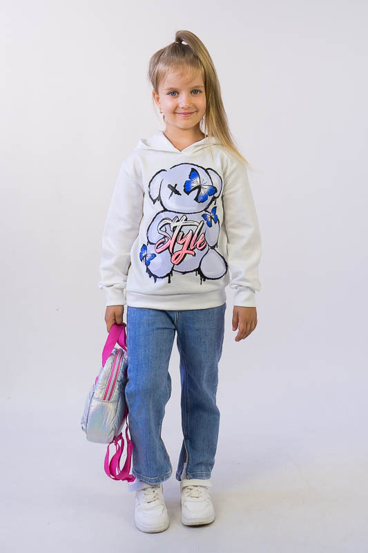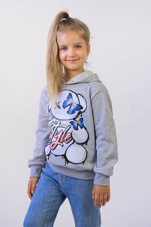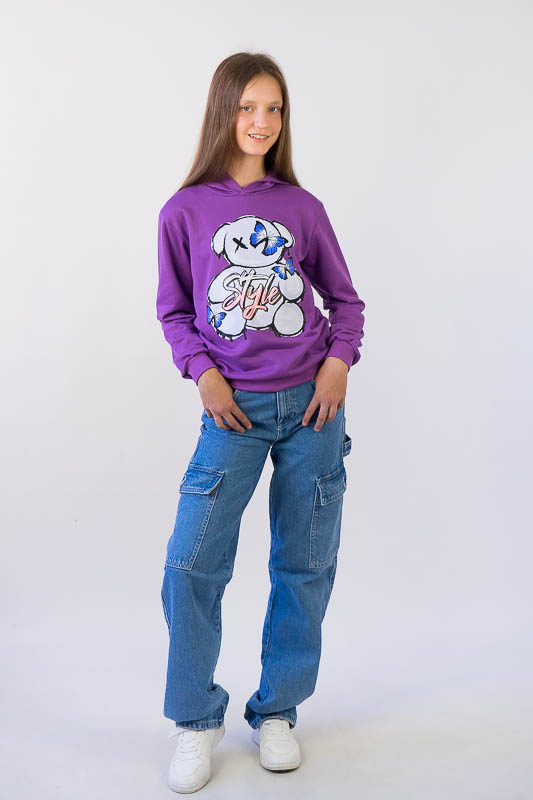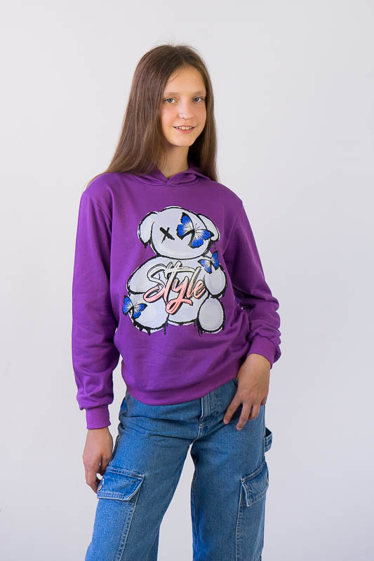 Однотонне худі з капюшоном від ТМ «Гном» виготовлене для дівчаток молодшого та підліткового віку. Прямі лінії крою, оптимальна довжина до середини лінії стегна ідеально поєднуються з якістю матеріалу та палітрою кольорів. У ньому тепло, затишно та комфортно. Передня частина виробу прикрашена яскравим малюнком, а зрізи рукавів та низу виробу оброблені еластичним матеріалом в основний тон. Худі виготовлено з трикотажного полотна – начісного футера, основою якого є 100% бавовна. Лицьова сторона матеріалу гладка, схожа на кулірне переплетення, виворіт полотна має невеликий м'який ворс. Плюсами футера є висока щільність, гігроскопічність та повітропроникність. Через натуральну основу матеріал можна вважати екологічним та гіпоалергенним. Є деякі негативні моменти – матерія погано реагує на вплив прямих сонячних променів та високих температур під час прання. Тому, щоб виріб не дав усадку, прати його рекомендують за температури не вище 30-40°C. Через наявність накату прасувати виріб рекомендується з виворітного боку із застосуванням парогенератора.