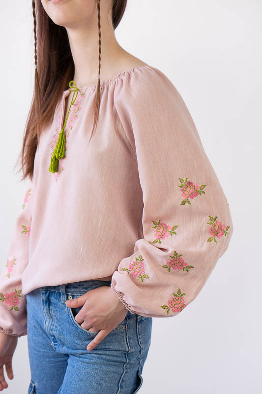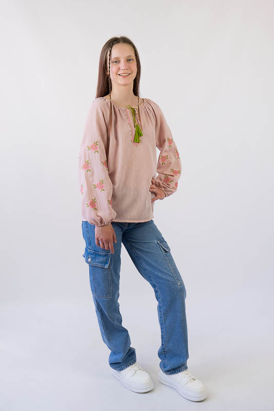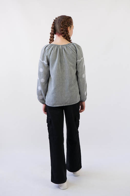 Вишиванка від ТМ «Гном» для дівчат підліткового віку виконана з полегшеного матеріалу, основою якого є льон. Це тонка і легка тканина з чудовим зовнішнім виглядом. Прекрасно тримає форму, не мнеться, має хорошу гігроскопічність. Модель вільного крою з довгим об’ємним рукавом. Передня частина виробу та рукава прикрашені машинною вишивкою. Вишиванку рекомендується прати при температурі 30°C в делікатному або ручному режимі, не використовувати відбілювачі або порошки з відбілювачами.