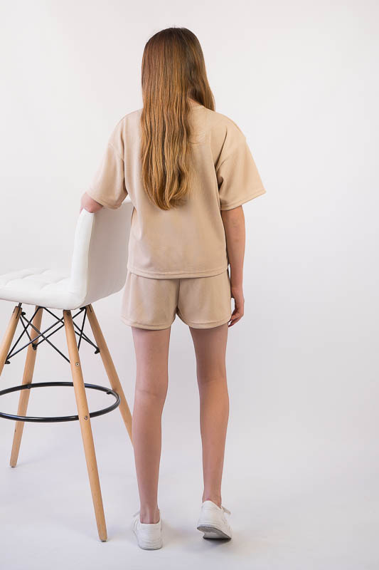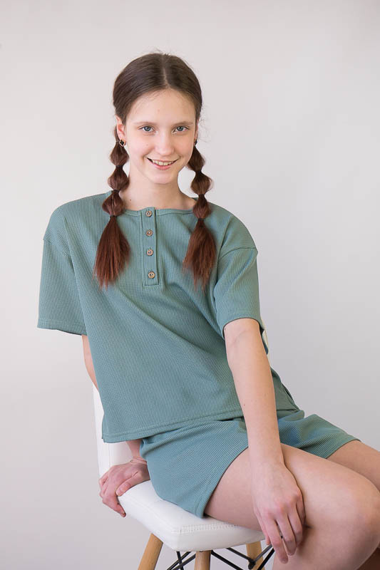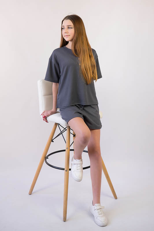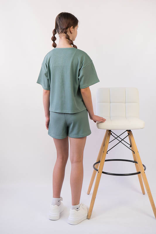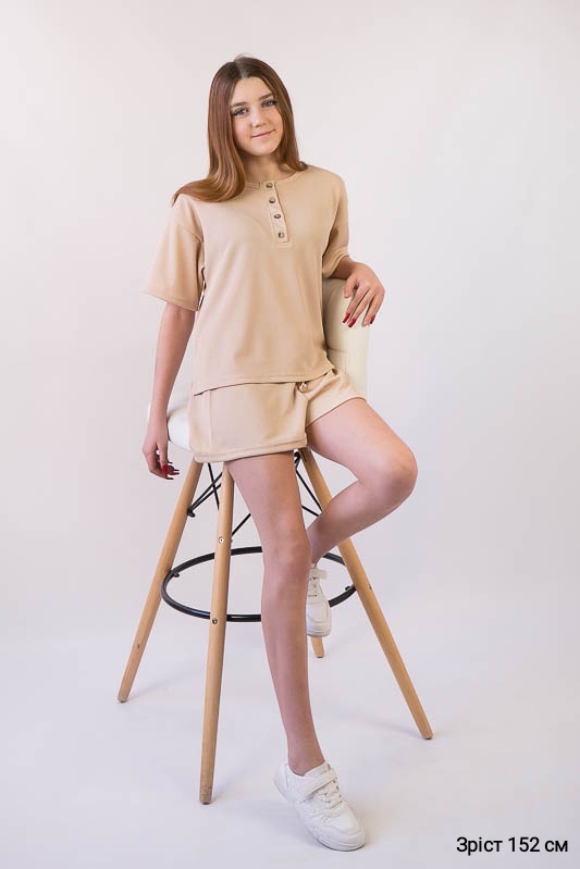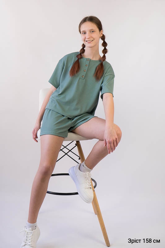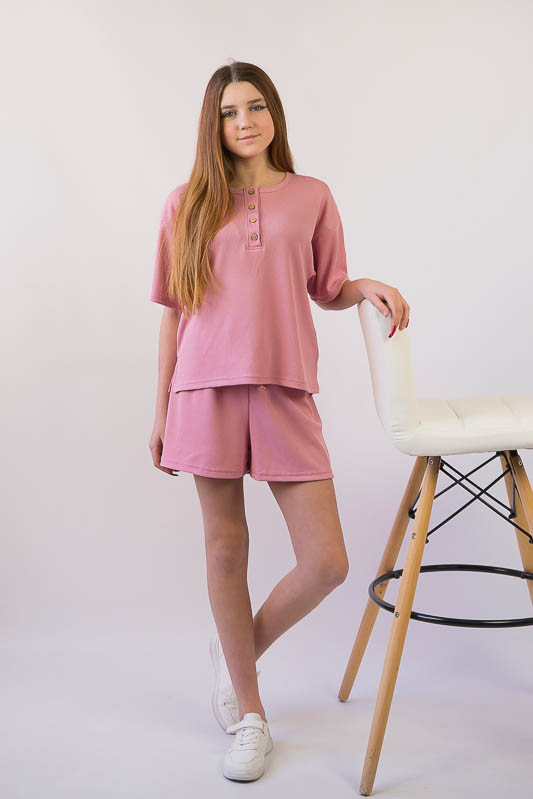 Легкий та практичний трикотажний комплект від ТМ «Гном» для дівчат підліткового віку. Він відмінно підійде як варіант домашнього одягу, так і одяг для відпочинку на свіжому повітрі. Комплект складається з об'ємної футболки на планці в стилі «oversize» та вільних шорт. Ці елементи так само можна комбінувати з іншими речами гардероба, створюючи нові образи. Модель виготовлена з трикотажного полотна фактурної в’язки. Трикотаж дуже еластичний, не мнеться та не вибагливий у догляді. Рекомендується прати при температурі 40°C, прасувати не обов'язково.