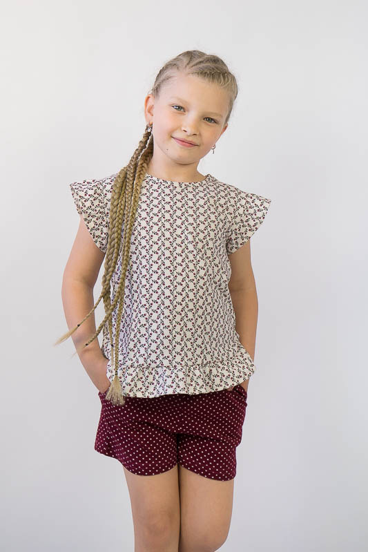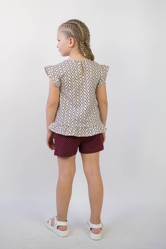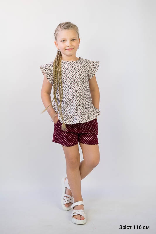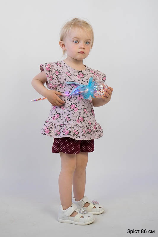 Легкий літній комплект для дівчаток від ТМ «Гном» - це, в першу чергу, комфортність та практичність. Він складається з майки з «крильцями» та шорт. Для зручності на спинці майки знаходиться застібка – кнопка. Комплект виготовлений з м'якого трикотажного полотна - кулір. Це бавовняне полотно, яке добре вбирає вологу, не сідає, тримає форму, гіпоалергенне, що дуже важливо в спекотну літню погоду. Прати комплект рекомендується при температурі не більш 40°C в «Делікатному» або «Ручному» режимі.