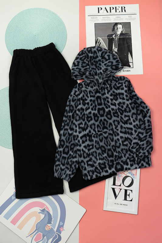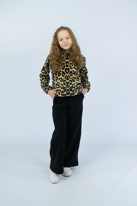Пропонуємо затишний та комфортний теплий костюм для дівчаток дошкільного та шкільного віку. Костюм практичний та зручний для повсякденних прогулянок у прохолодну погоду. Костюм складається з худі та капюшона, а також з широких штанів кльош. Кармани присутні на худі та штанах. Костюм пошитий з трикотажного полотна - фліс. Температури води, що дорівнює 30°С, буде достатньо для якісного прання матеріалу.