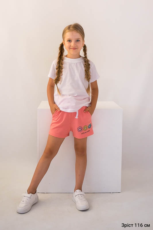 Шорти спортивного стилю від ТМ «Гном» виготовлені для дівчаток дошкільного та молодшого шкільного віку. Укорочена модель зі зручною посадкою стане чудовим доповненням до футболки або майки. Широкий пояс на кулісці, бічні кишені, а також м'який матеріал роблять шорти зручними та комфортними у повсякденному носінні. Передня частина прикрашена малюнком. Виготовлено виріб із трикотажного полотна – двунитка. Матеріал має позитивні споживчі якості: добре вбирає вологу; ефективно пропускає повітря; не утворює пилок (ковтунів); не витягується при носінні; простий у догляді. Шорти слід прати у теплій воді. Температури води, що дорівнює 30°C, буде достатньо для якісного прання матеріалу.