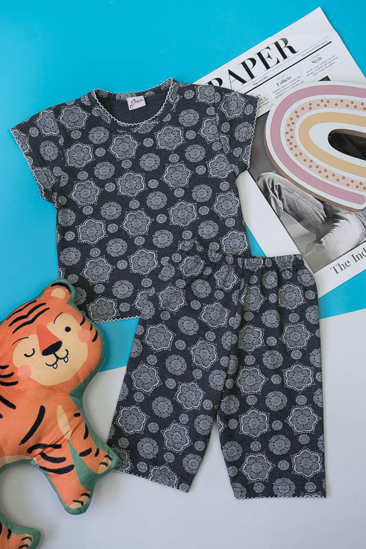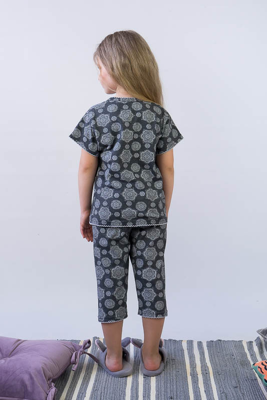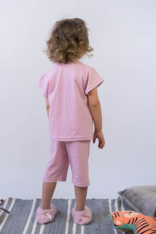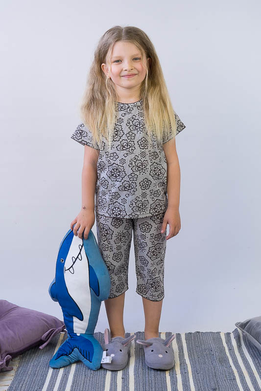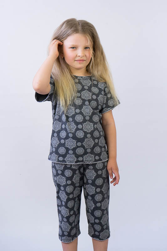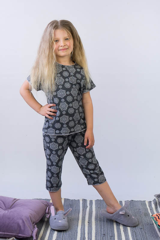 Легка піжама для дівчаток - це зручний та практичний варіант одягу для сну. М'який матеріал, відсутність стискувальних та декоративних елементів таких як стрічки, паєтки, бісер, шнурівка, застібки, плюс вільний фасон – це ті фактори, що впливають на якість сну. ТМ «Гном» пропонує комфортну піжаму для вашої принцеси, яка складається з футболки та укорочених штанів. Пошито виріб із тонкого кулірного трикотажного полотна. Сировиною куліру служить 100% бавовна. До переваг полотна варто віднести такі параметри як екологічність, гіпоалергенність, мале зминання. Особливості догляду за виробом - це ручне прання або машинне в делікатному режимі при температурі 30-40°C; віджимання в пральній машині дозволено на мінімальних оборотах.