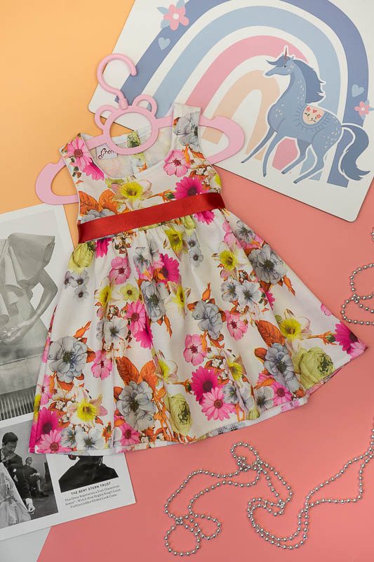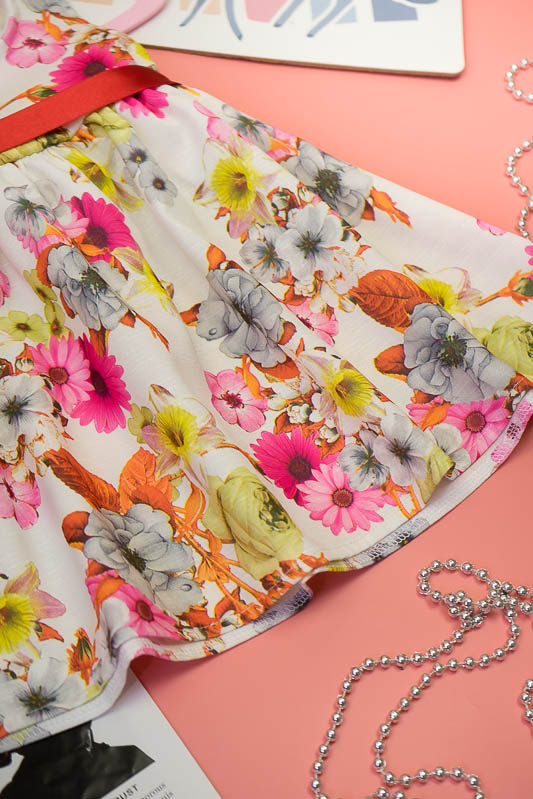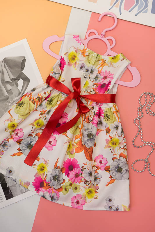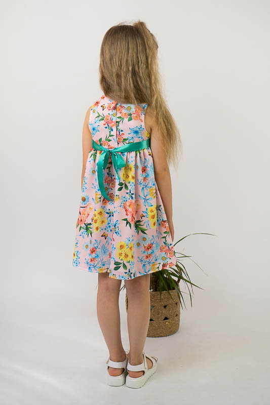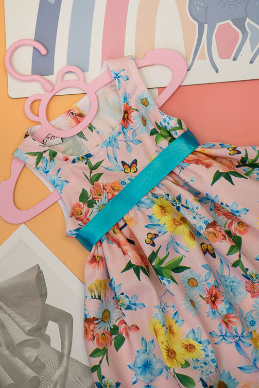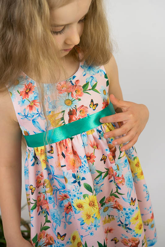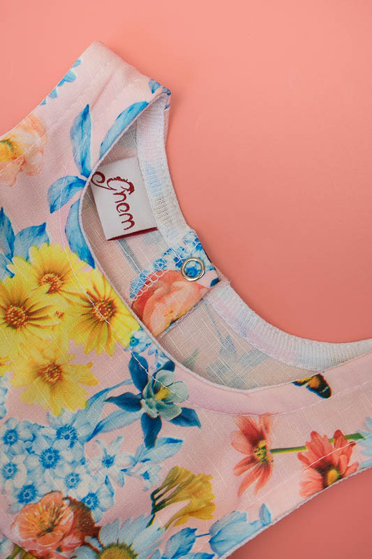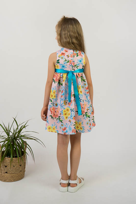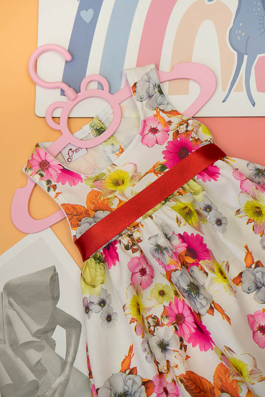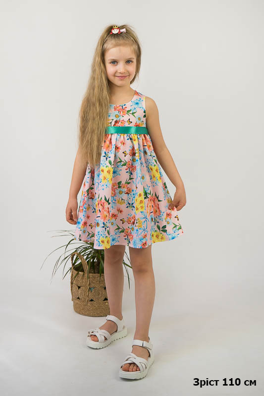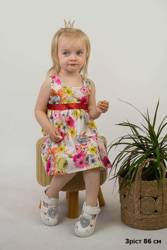 У святковій сукні від ТМ «Гном» ваша юна леді буде виглядати яскраво та неперевершено. Квітковий принт відмінно поєднується з вільним кроєм, який чудово забезпечує свободу руху вашої дитини. На спинці знаходиться застібка – кнопки. Доповнюється яскравий наряд атласною стрічкою. Сукня виготовлена з полегшеного матеріалу, основою якого є льон. Це тонка і легка тканина з чудовим зовнішнім виглядом. Прекрасно тримає форму, не мнеться, має хорошу гігроскопічність, при невеликій товщині характеризується відмінною міцністю. Сукню рекомендується прати при температурі 40°C в делікатному або ручному режимі, не використовувати відбілювачі або порошки з відбілювачами.