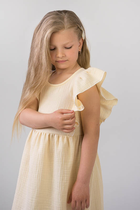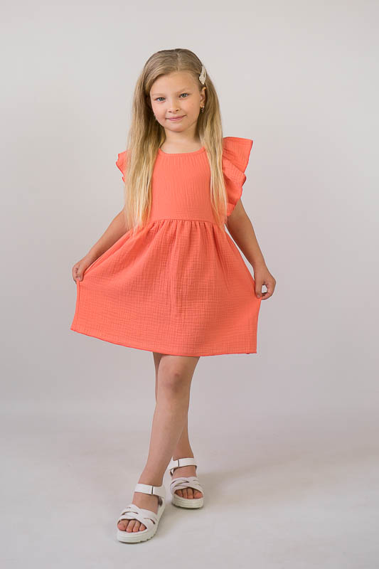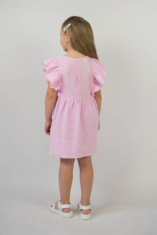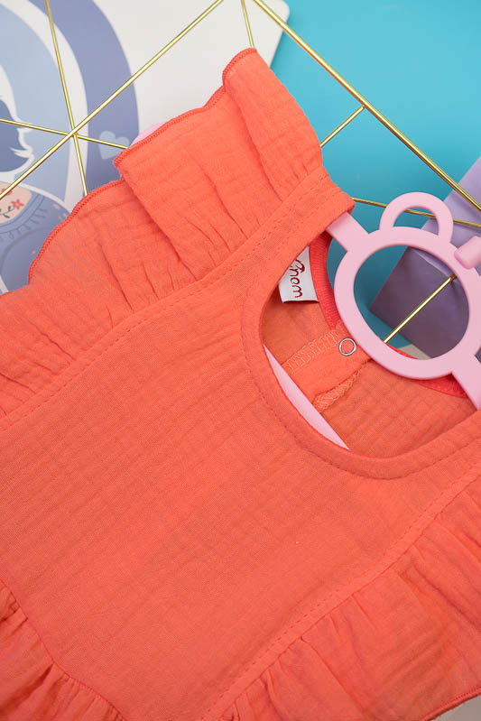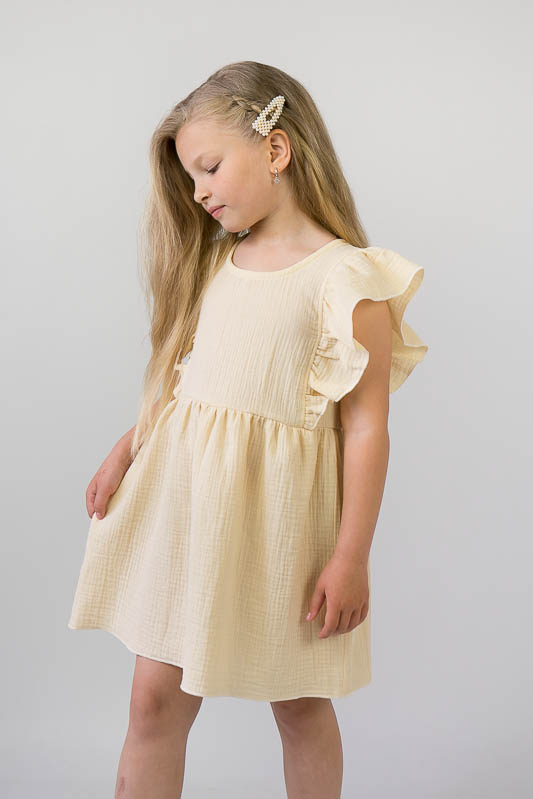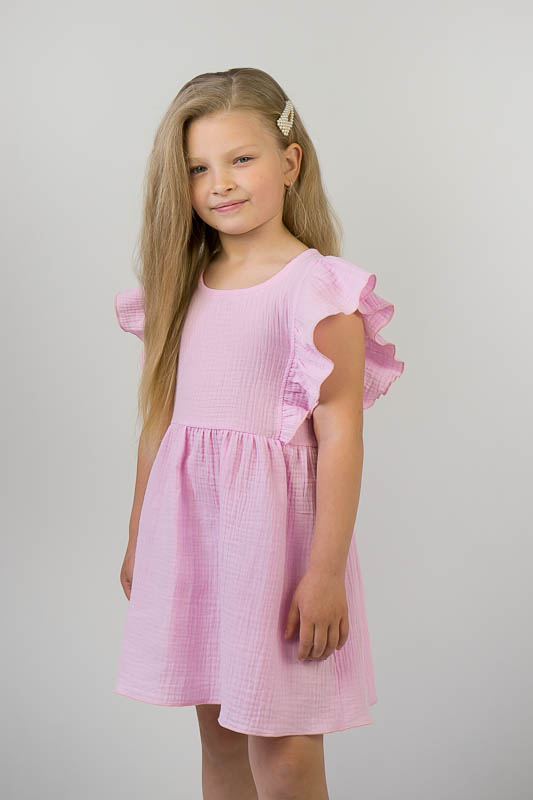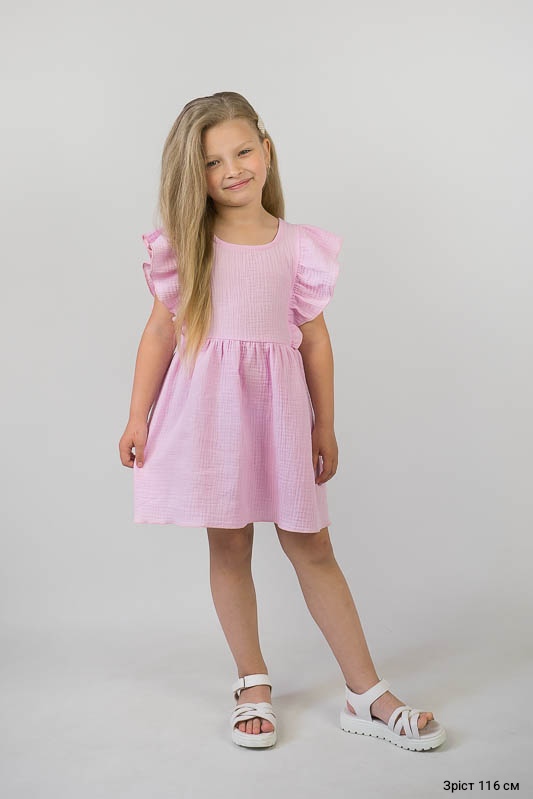 Тонкий бавовняний літній сарафан від ТМ «Гном» виготовлений для дівчаток дошкільного та молодшого шкільного віку. Він легкий та комфортний. Зручний крій доповнюють рюші, надаючи виробу красивий і романтичний вид. По спинці проходить застібка кнопки. Сарафан пошито з мусліну – бавовняної тканини, яку обирають для пошиття літнього одягу. Муслін – дуже тонка, майже прозора тканина, дуже легка та водночас міцна, добре вбирає вологу та швидко висихає, має надійний захист від ультрафіолетових променів. Щоб муслінові вироби служили вам довго та мали привабливий вигляд, за ними потрібно правильно доглядати, а саме: прати в теплій воді при температурі не більше 40°C; перед сушінням добре струснути та розправити; довго не сушити на сонці; прасувати в напівсухому вигляді з використанням пару.