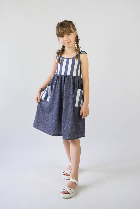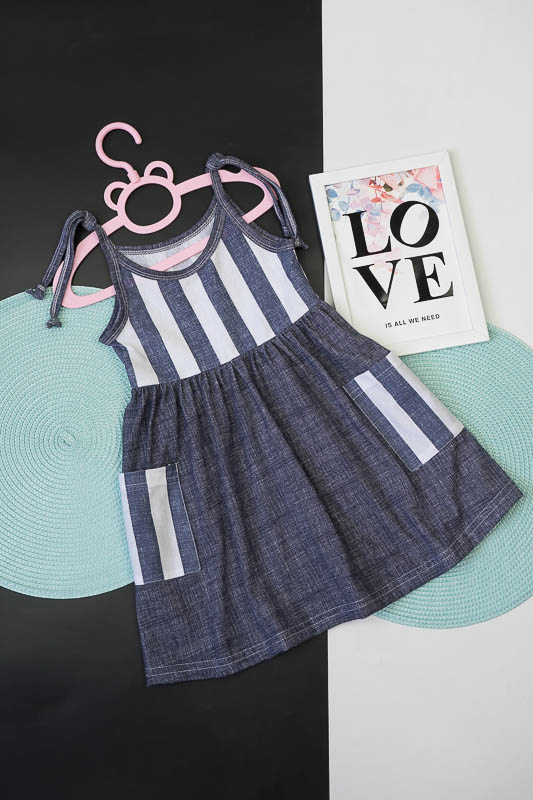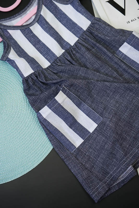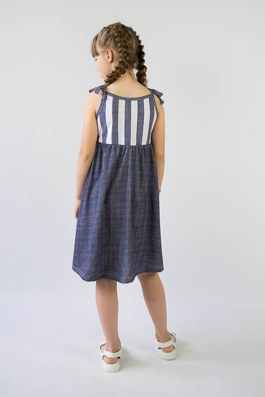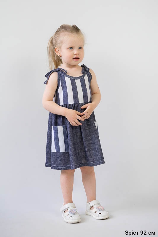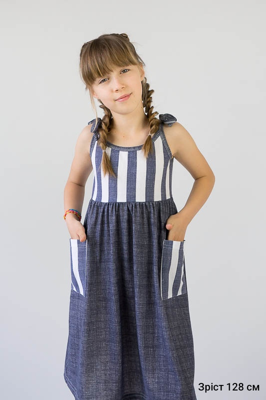 Яскравий легкий сарафан від ТМ «Гном» стане приємною обновкою до спекотного літа. Він зручний та комфортний. Виготовлена модель з комбінації однотонного та смугастого кулірного трикотажного полотна. Кулір – м'який тонкий матеріал, який добре вбирає вологу, не сідає, тримає форму, гіпоалергенний. Сарафан рекомендується прати при температурі до 40°C у делікатному або ручному режимі, не використовувати відбілювачі або порошки з відбілювачами.