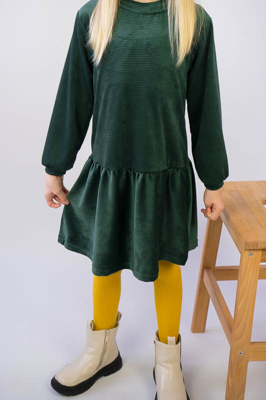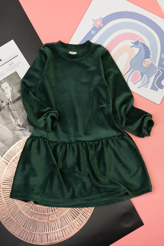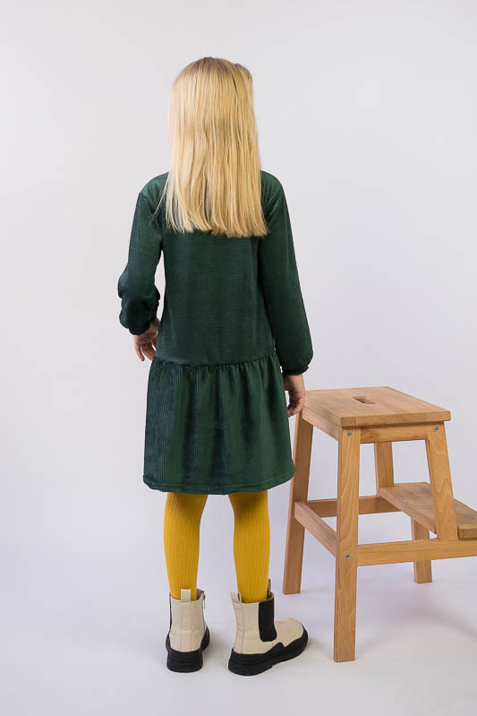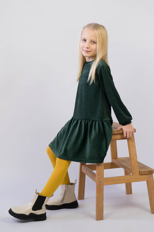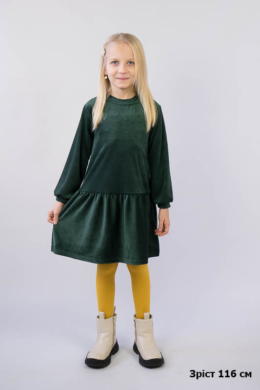 Сукня від ТМ «Гном» для маленьких дівчаток стане в нагоді й для урочистих заходів, і для створення красивих повсякденних образів. Комфорт та зручність доповнюються вільним кроєм, відсутністю застібок та приємним на дотик матеріалом. Виріб виготовлений з трикотажного велюру, який має дизайн у поперечний рубчик. Матеріал має ворсисті смужки на лицьовій стороні та гладкий з вивороту. Велюр стрейч – щільне та еластичне полотно. Рекомендований догляд за сукнею – це прання в делікатному режимі при температурі 30°C; сильно віджимати не рекомендується, краще дозволити воді стекти; прасувати не обов’язково.