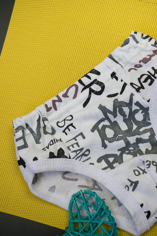 Дитячі трусики пошиті з трикотажного полотна - кулір. Вироби з куліру - це ідеальний варіант для дітей і володарів чутливої шкіри. Характеристики куліру: легкий, тонкий і приємний на дотик; добре вбирає вологу; через особливості плетіння добре тримає форму; тягнеться тільки в ширину; при пранні не дає усадку; простий в догляді, міцний і зносостійкий. Завдяки своїй натуральності кулир - це ідеальне рішення для виготовлення дитячих речей. Рекомендована прання на делікатних режимах пральної машини при температурі до 40°C.