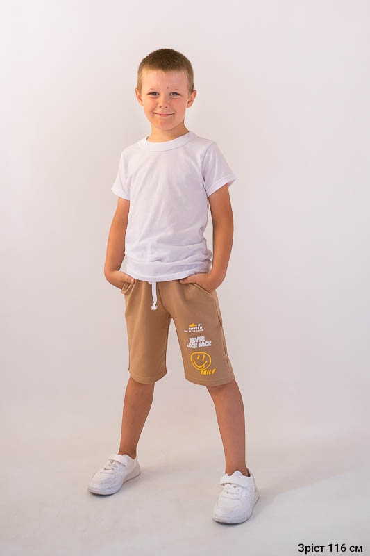 Шорти спортивного стилю від ТМ «Гном» виготовлені для хлопців дошкільного та молодшого шкільного віку. Подовжена модель зі зручною посадкою стане чудовим доповненням до футболки або майки. Широкий пояс на кулісці, бічні кишені, а також м'який матеріал роблять шорти зручними та комфортними у повсякденному носінні. Передня частина прикрашена малюнком. Виготовлено виріб із трикотажного полотна – двунитка. Матеріал має позитивні споживчі якості: добре вбирає вологу; ефективно пропускає повітря; не утворює пилок (ковтунів); не витягується при носінні; простий у догляді. Шорти слід прати у теплій воді. Температури води, що дорівнює 30°C, буде достатньо для якісного прання матеріалу.
