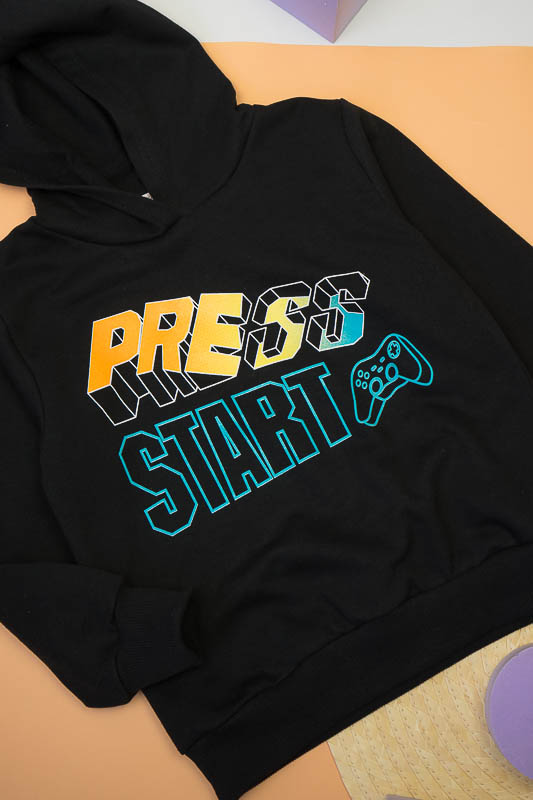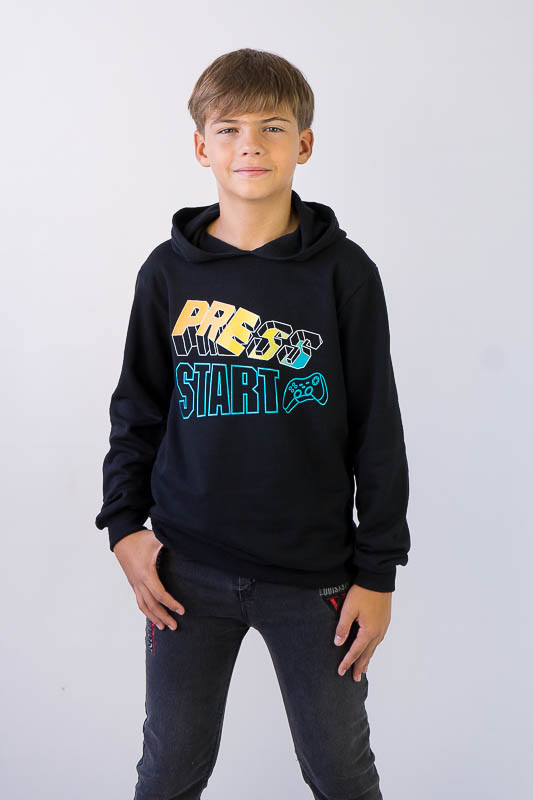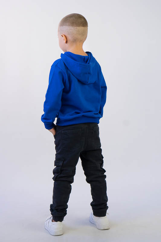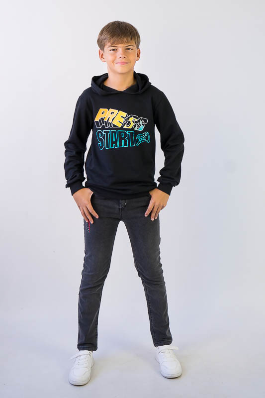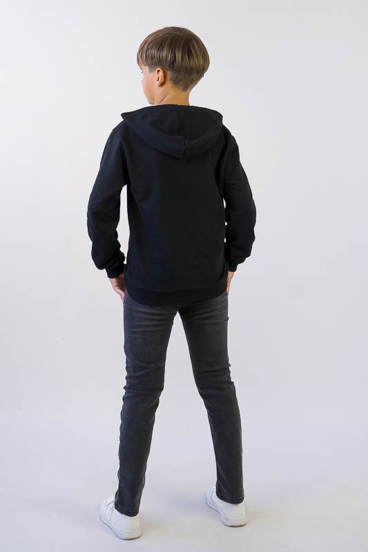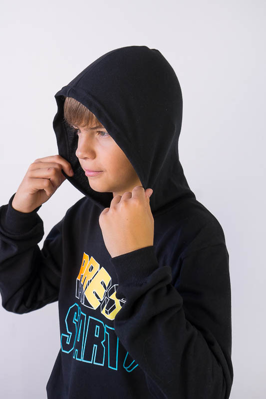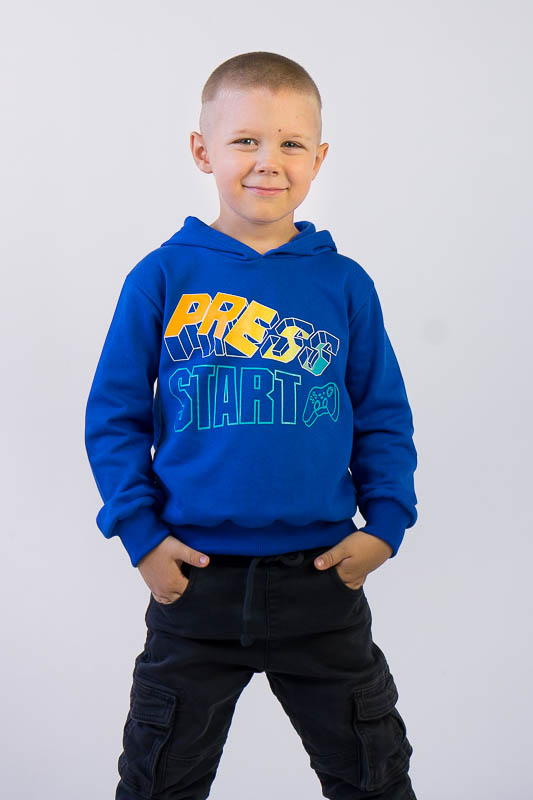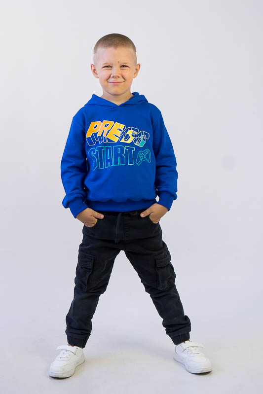 Однотонне худі з капюшоном від ТМ «Гном» виготовлене для хлопчиків молодшого та підліткового віку. Прямі лінії крою, оптимальна довжина до середини лінії стегна ідеально поєднуються з якістю матеріалу та палітрою кольорів. У ньому тепло, затишно та комфортно. Передня частина виробу прикрашена яскравим малюнком, а зрізи рукавів та низу виробу оброблені еластичним матеріалом в основний тон. Худі виготовлено з трикотажного полотна – начісного футера, основою якого є 100% бавовна. Лицьова сторона матеріалу гладка, схожа на кулірне переплетення, виворіт полотна має невеликий м'який ворс. Плюсами футера є висока щільність, гігроскопічність та повітропроникність. Через натуральну основу матеріал можна вважати екологічним та гіпоалергенним. Є деякі негативні моменти – матерія погано реагує на вплив прямих сонячних променів та високих температур під час прання. Тому, щоб виріб не дав усадку, прати його рекомендують за температури не вище 30-40°C. Через наявність накату прасувати виріб рекомендується з виворітного боку із застосуванням парогенератора.
