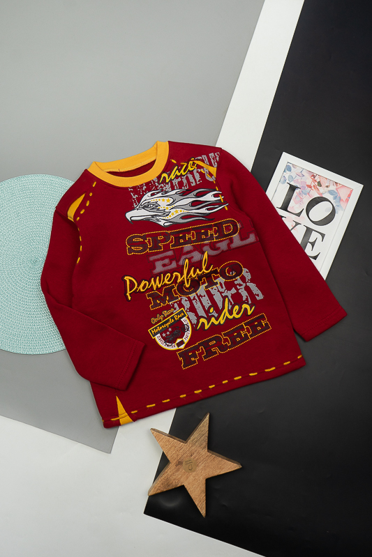 Стильний джемпер має яскравий принт, модель яка чудово підійде хлопчикам дошкільного віку. Горловина оброблена еластичним матеріалом. Джемпер виготовлений із трикотажного полотна – тринитка. Це тепле та м'яке трикотажне полотно з високим вмістом бавовни. Воно добре вбирає вологу та дає тілу можливість дихати. Такий одяг не парить, а дарує тепло та почуття затишку. Рекомендований догляд - це делікатне прання при температурі не більше 30°C, прасування тільки з лицьового боку.