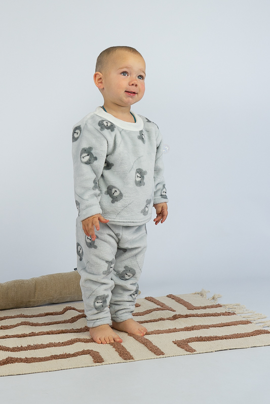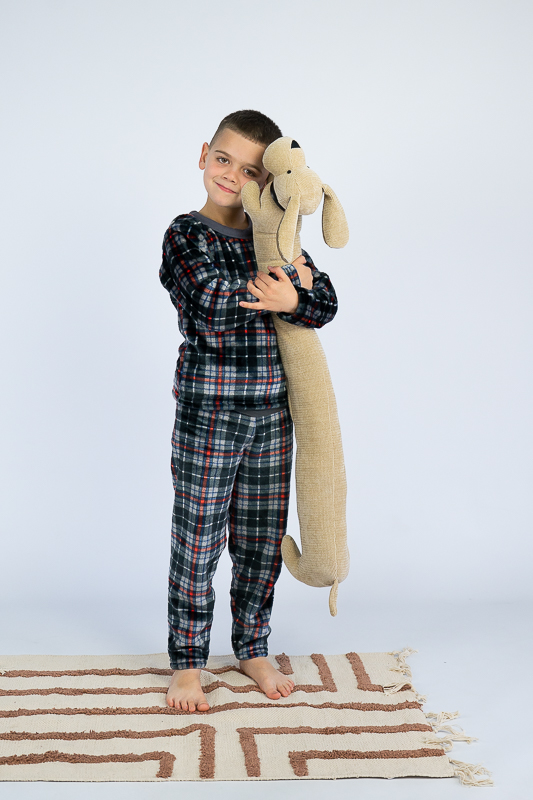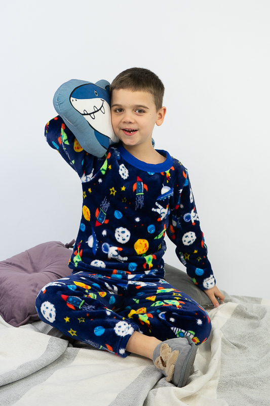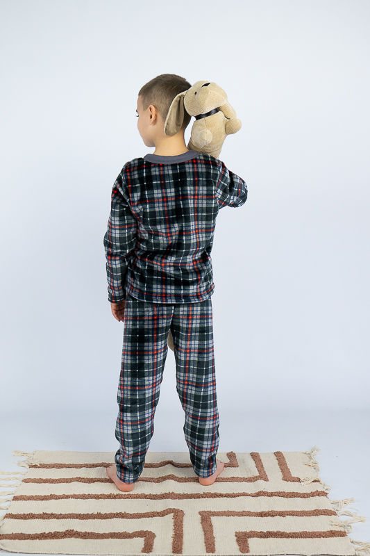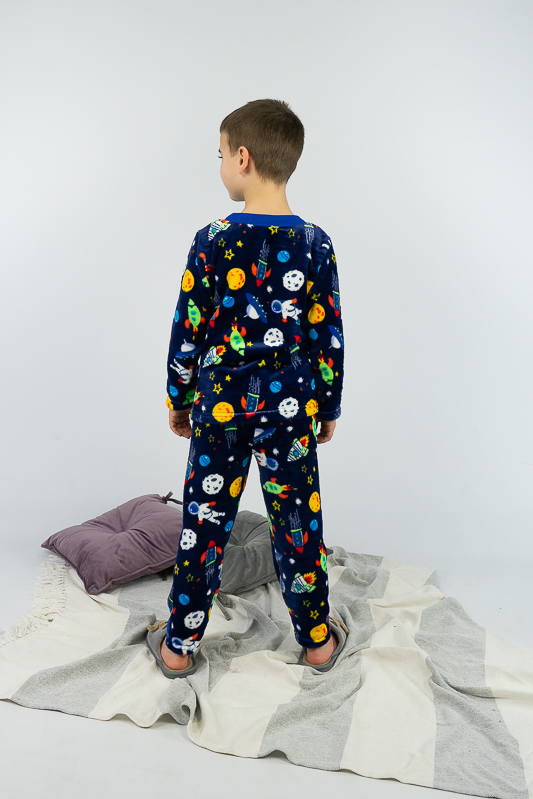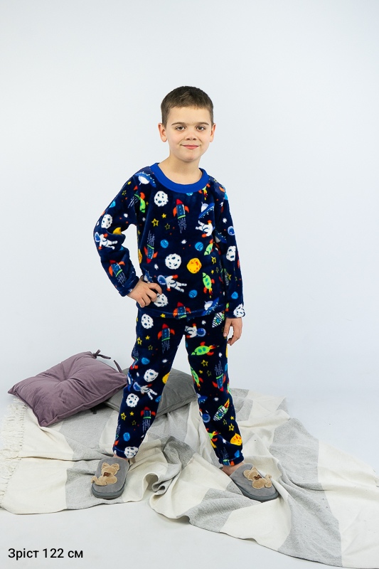 Тепла та яскрава дітяча піжама від ТМ «Гном» – це затишок, комфорт та повноцінний і спокійний сон вашої дитини. М'якість та невагомість матеріалу поєднанні з вільним кроєм, що забезпечює зручність та легкість. Модель виконана з полотна велсофт (махра). Матеріал складається з 75% бавовни 25% поліестеру, м'який і міцний з довгим ворсом, не линяє, не розтягується, не дивлячись на ворсистість, не схильний до утворення ковтунів. Дуже затишний і теплий, не подразнює шкіру, гіпоалергенний і повітропроникний, особливо практичний в зимовий період. Горловину кофти оброблено еластичною бейкою, низ рукавів, низ кофти і низ штанів оброблені еластичним швом. Купуючи цю модель Ви отримуете затишок і комфорт для ваших діток. Піжама розрахована на дітей від 2 до 9 років.