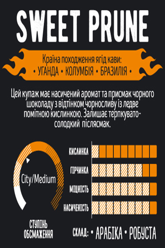 Цей купаж має насичений аромат та присмак чорного шоколаду з відтінком чорносливу із ледве помітною кислинкою. Залишає терпкувато-солодкий посмак.