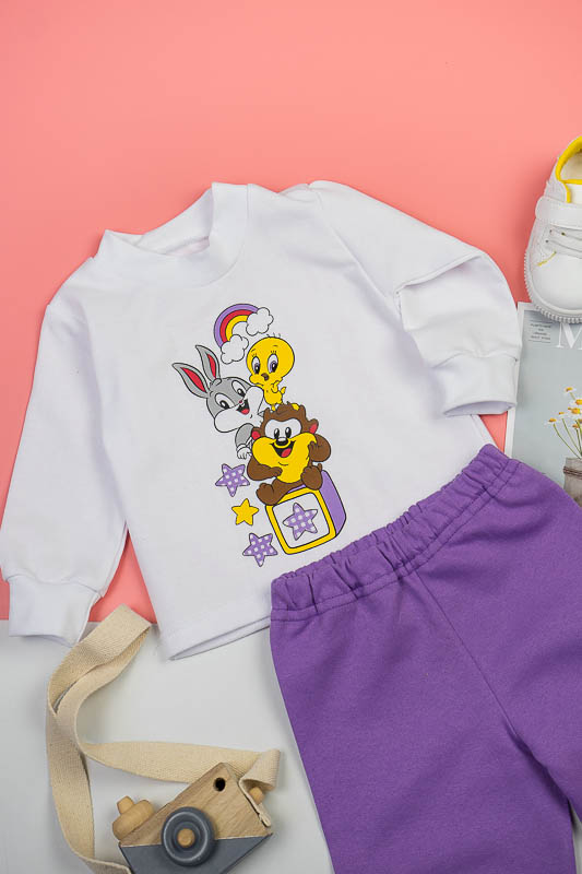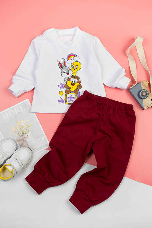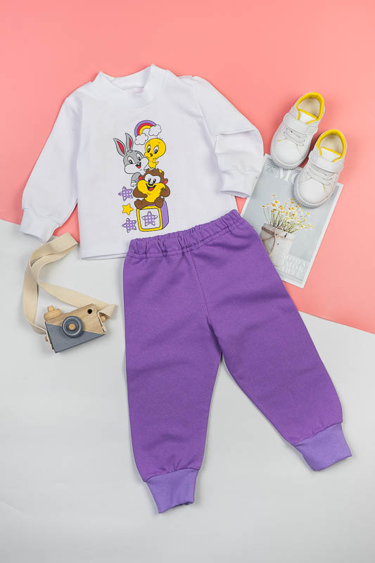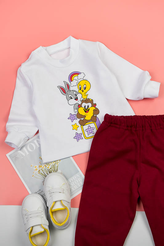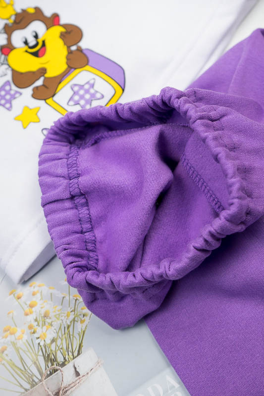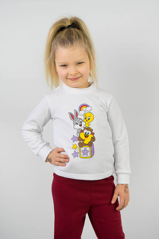 Дитячий трикотажний костюм - зручний варіант, як для дитячого садка, так і для дому. ТМ «Гном» подбала, щоб ваше чадо в нашому костюмі завжди почувалося комфортно, зручно і при цьому виглядало стильно, яскраво та цікаво. Костюм складається з білого джемпера і штанів, пошитих з яскравого однотонного полотна. По передній частині джемпер прикрашений цікавим накатом, який об'єднує елементи костюма в одне ціле. Застібкою на джемпері служать кнопки по плечовому зрізі. Костюм виготовлений з начісного футера. Це трикотажне полотно, основою якого є 100% бавовна. Лицьова сторона матеріалу гладка, схожа на кулірне переплетення, виворіт полотна має невеликий м'який ворс. Плюсами футера є висока щільність, гігроскопічність і повітропроникність. У виробі з футера з начосом вам буде тепло і дуже затишно. Через натуральні основи матеріал можна вважати екологічним і гіпоалергенним. Є деякі негативні моменти - матерія погано реагує на вплив прямих сонячних променів і високих температур при пранні. Тому, щоб виріб не дав усадку, прати його рекомендують при температурі не вище 30-40°С. Прасувати потрібно з лицьового боку.