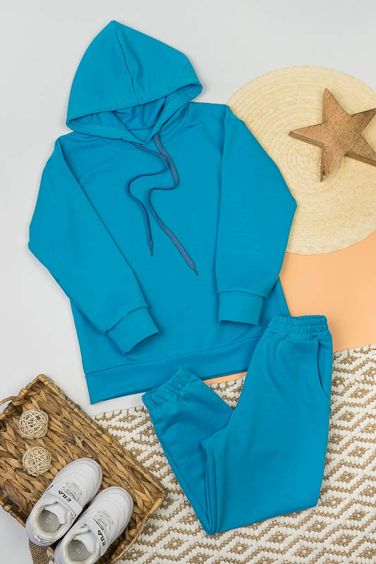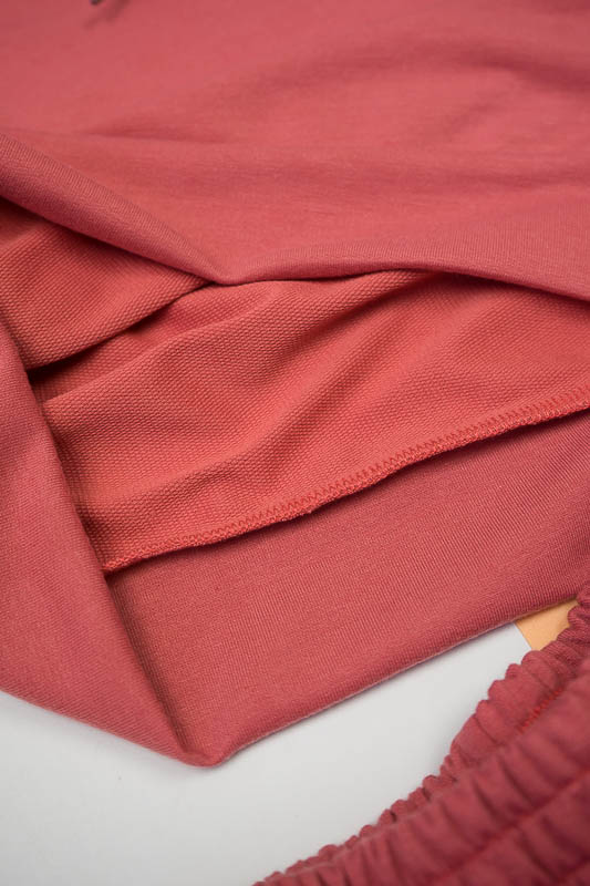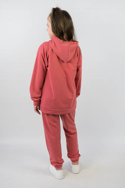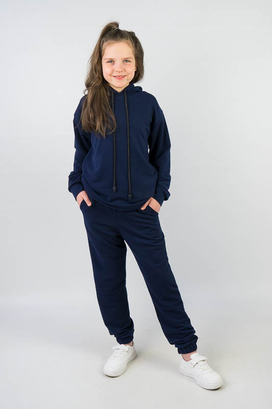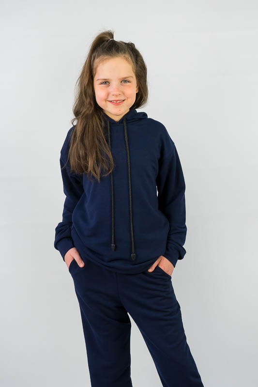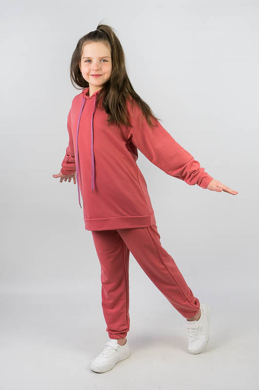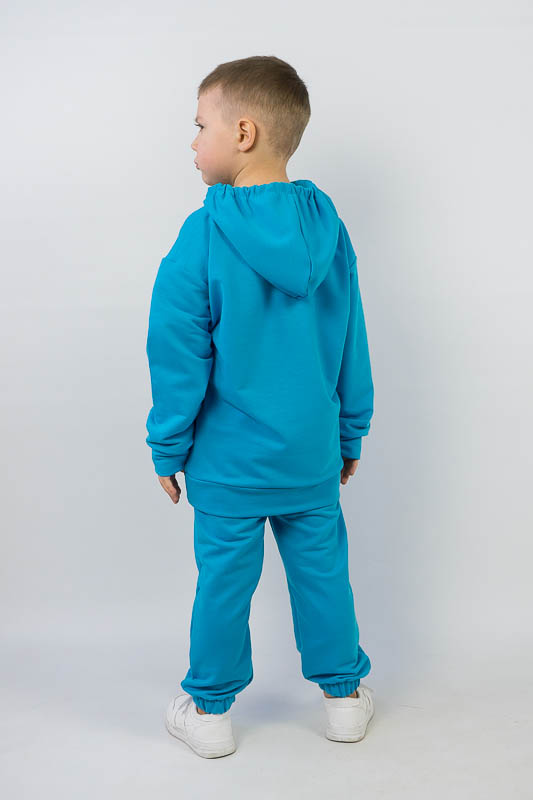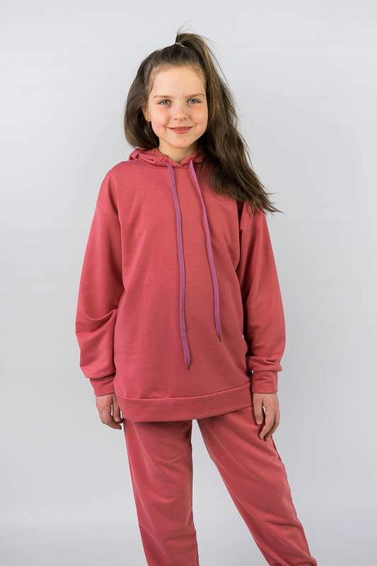 ТМ «Гном» пропонує спортивний костюм із капюшоном у стилі «oversize», який чудово підійде як дітям молодшого шкільного віку, так і підліткам. Кольорова гама дозволить вибрати костюм на свій смак. Виріб виготовлений із щільного та м'якого трикотажного полотна – двунитка. Ще його називають футер-стрейч. Поєднання базових властивостей трикотажу та ефекту від додавання у в'язку футерної нитки повідомляє матеріалу наступні властивості: добре вбирає вологу; ефективно пропускає повітря; має високу теплоощадну здатність; не утворює пилок (ковтунів); не витягується при носінні; простий у догляді. Виріб слід прати у теплій воді. Температури води, що дорівнює 30° C, буде достатньо для якісного прання матеріалу. Від прасування краще відмовитися або ж прасувати із застосуванням пару з виворітного боку.