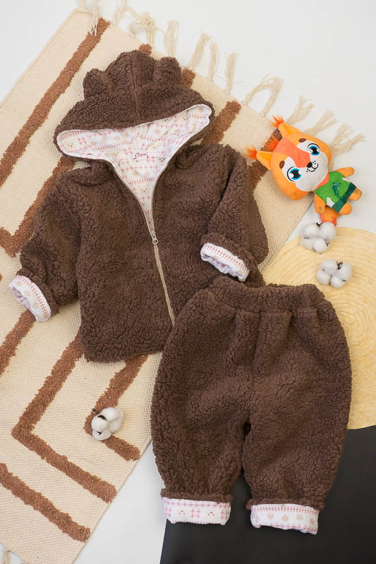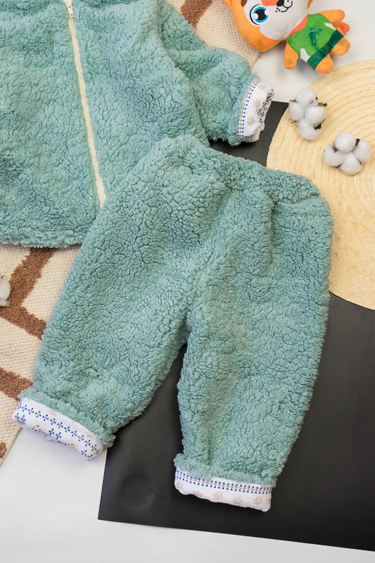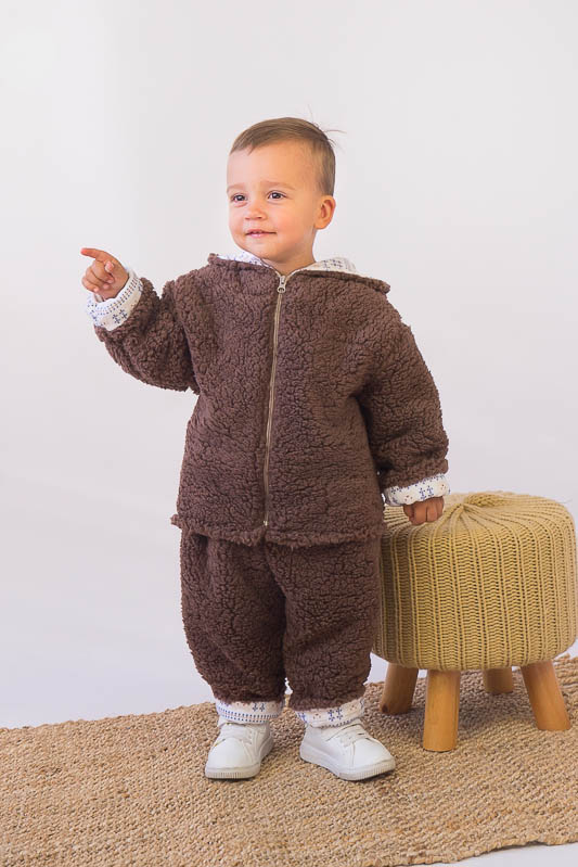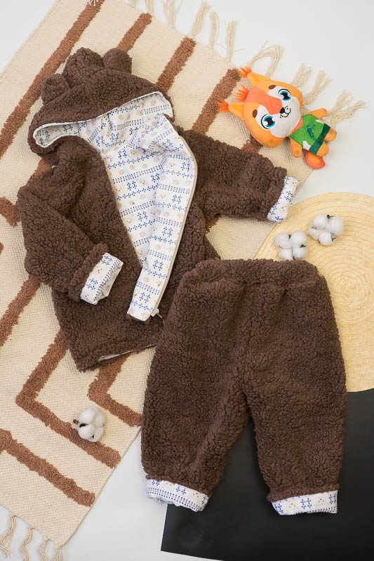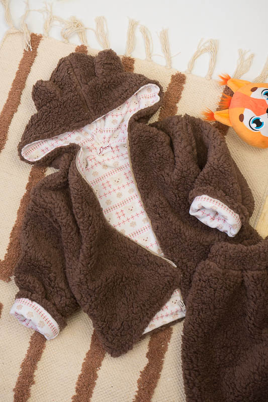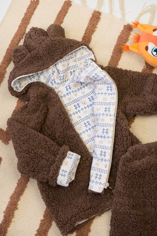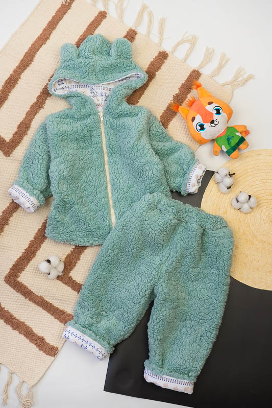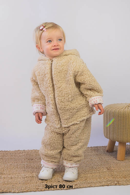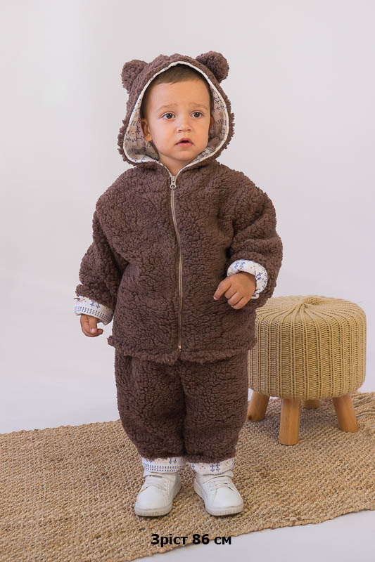 М’який та теплий демісезонний костюм від ТМ «Гном» виготовлений для малюків від 6-ти до 18 місяців. Він складається з курточки та штанів, які, за допомогою відворотів на рукавах та штанах, можна регулювати на виріст. Подовжена курточка на блискавці з капюшоном, який прикрашений вушками, та об’ємні штани зроблять з вашого малюка милого ведмежа. М’який та пухнастий матеріал вдало поєднуються з підкладкою - щільним велюром на бавовняній основі, через що костюм не пропускатиме холодне повітря. Основний матеріал – це штучне хутро «Тедді». Хутро має тканинну основу з хорошою еластичністю. На дотик тканина м'яка. На лицьовій стороні має невеликі букле-барашки, які створюють об'єм. Матеріал не мнеться та не потребує складного догляду. Рекомендується делікатне прання в теплій воді.