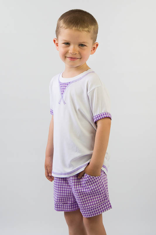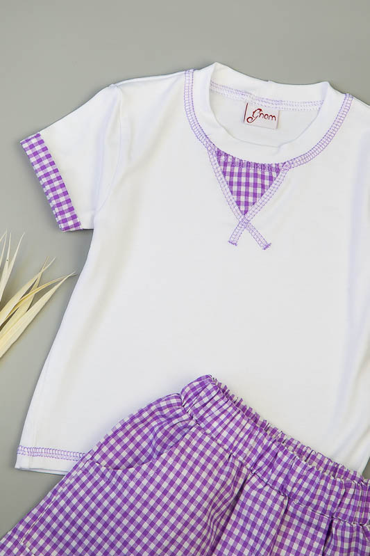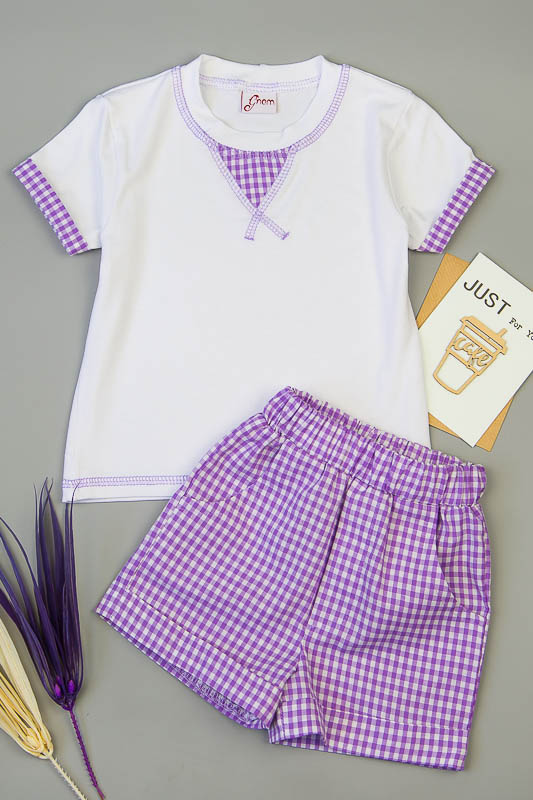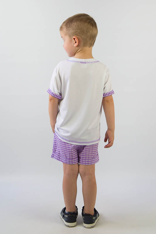 Комплект для хлопчиків дошкільного та молодшого шкільного віку від ТМ «Гном» прекрасно підійде для спекотної літньої погоди. Складається він з футболки та шортів з кишенями і відворотного манжета. Футболка виготовлена з легкого і тонкого віскозного трикотажного полотна. Горловина футболки оформлена вставкою, а рукава відворотними манжетами виконаними з оздоблювального матеріалу. Шорти пошиті з легкої бавовняної тканини - поплін. В пояс виробу вставлена широка резина. До складу віскози входять рослинні волокна, що роблять її схожою на бавовну. Віскоза також добре вбирає вологу, приємна на дотик, воздухопроникна і не викликає алергію. Перевагами попліну є гігроскопічність, міцність, зносостійкість, противоаллергенність. Тканина не дає усадку при пранні, легко прасується. В цілому комплект не вимагає особливого догляду. Прання звичайне, машинне, при 40 ° С з використанням простого прального порошку.