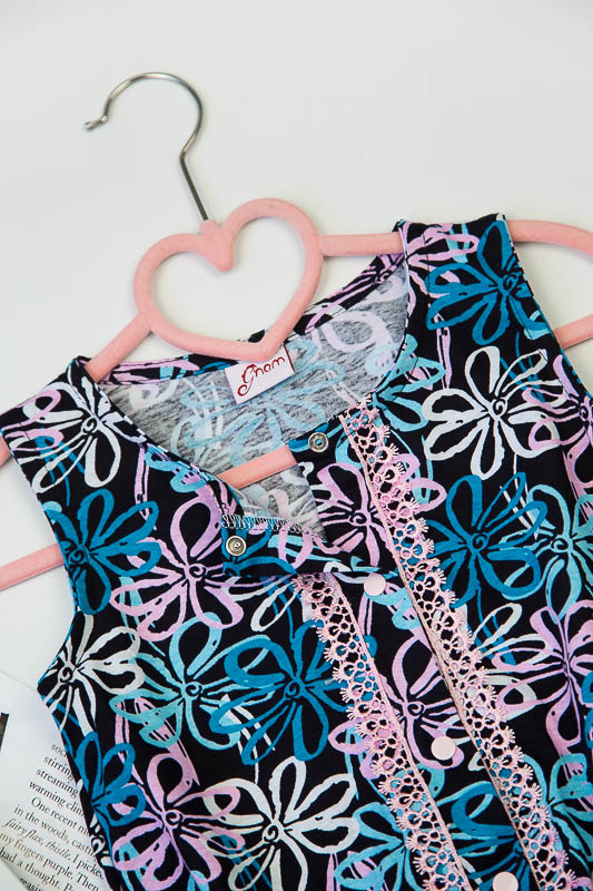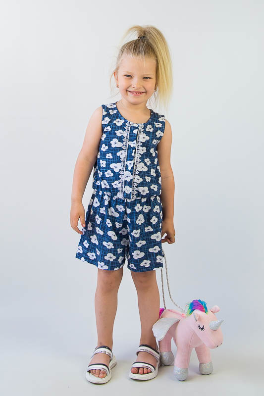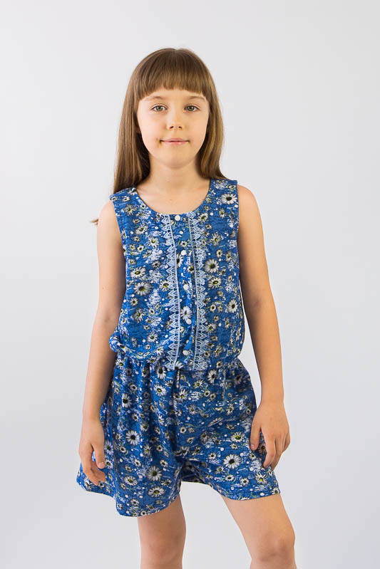 Комбінезон для дівчаток від ТМ «Гном» – це дуже зручна та практична модель для спекотного літнього періоду. Він легкий, комфортний та універсальний. Вільний крій не перешкоджає активності дитини, а поєднання принта в квіточку з мереживним оздобленням надають виробу модного вигляду. Застібкою по всій довжині полички є кнопки, а по шву талії прокладена м'яка еластична тасьма. Комбінезон виготовлений з м'якого трикотажного полотна – кулір, який добре вбирає вологу, не сідає, тримає форму, гіпоалергенно. Виріб рекомендується прати при температурі до 40°С у делікатному або ручному режимі, не використовувати відбілювачі або порошки з відбілювачами.