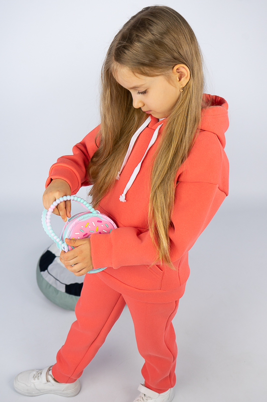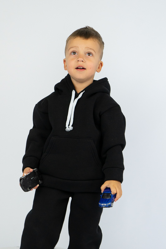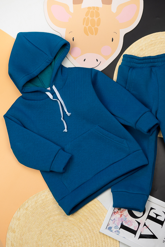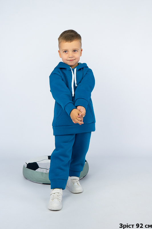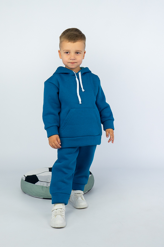 При настанні холодів в дитячому гардеробі обов'язково повинен бути теплий костюм. Він практичний та зручний для повсякденних прогулянок і активних ігор в прохолодну погоду. ТМ «Гном» пропонує вашому чаду одягнутися в наш яскравий і модний костюмчик на товстому начосі, в якому буде зручно і комфортно. Костюм складається із худі з капюшоном і штанів на манжетах. Розмірний ряд і різноманітність кольорів дозволяють обрати свій варіант як хлопчикам, так і дівчаткам. Костюм виготовлений із щільної тринитки на флісі. Це тепле та м'яке трикотажне полотно з високим вмістом бавовни. Воно добре вбирає вологу і дає тілу можливість «дихати». Такий одяг не парить, а дарує тепло та відчуття затишку. Рекомендований догляд - це делікатне прання при температурі не більше 35°C, прасування тільки з лицьової сторони.