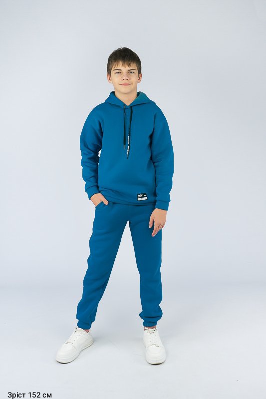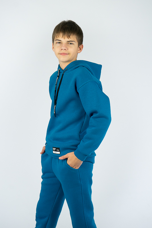 При настанні холодів в кожному гардеробі обов'язково повинен бути теплий костюм. Він практичний та зручний для повсякденних прогулянок в прохолодну погоду. ТМ «Гном» пропонує підлітковий костюм на товстому начосі, в якому буде зручно і комфортно. Костюм складається із худі з капюшоном подовженого крою та вільних штанів. Костюм виготовлений із щільної тринитки на флісі. Це тепле та м'яке трикотажне полотно з високим вмістом бавовни. Воно добре вбирає вологу і дає тілу можливість «дихати». Такий одяг не парить, а дарує тепло та відчуття затишку. Рекомендований догляд - це делікатне прання при температурі не більше 35°C, прасування тільки з лицьової сторони.
