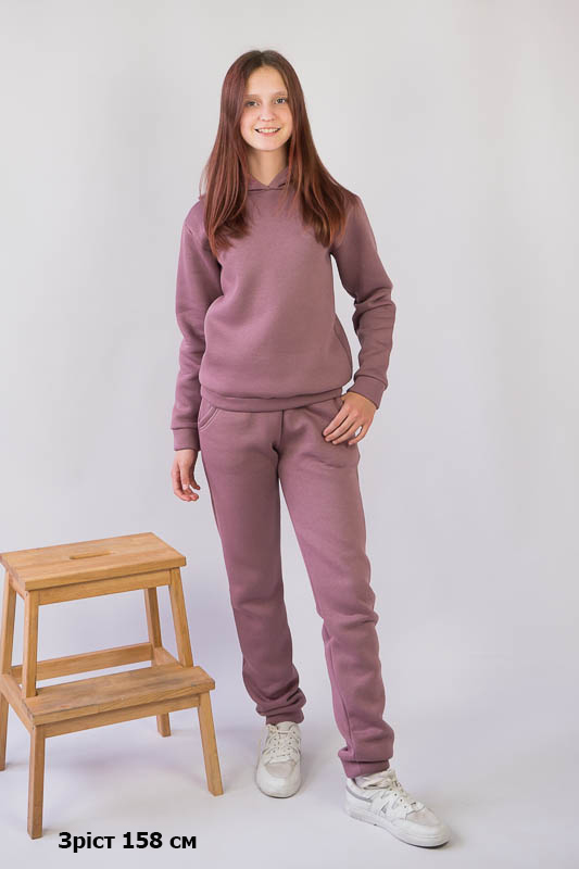 При настанні холодів в кожному гардеробі обов'язково повинен бути теплий костюм. Він практичний та зручний для повсякденних прогулянок в прохолодну погоду. ТМ «Гном» пропонує підлітковий костюм на товстому начосі, в якому буде зручно і комфортно. Костюм складається із худі з капюшоном і штанів на манжетах. Костюм виготовлений із щільної тринитки на флісі. Це тепле та м'яке трикотажне полотно з високим вмістом бавовни. Воно добре вбирає вологу і дає тілу можливість «дихати». Такий одяг не парить, а дарує тепло та відчуття затишку. Рекомендований догляд - це делікатне прання при температурі не більше 35°C, прасування тільки з лицьової сторони.