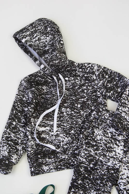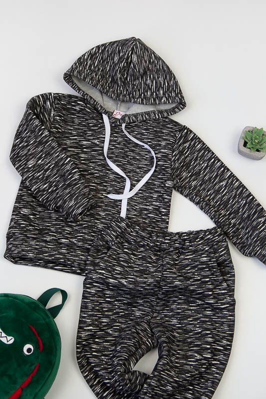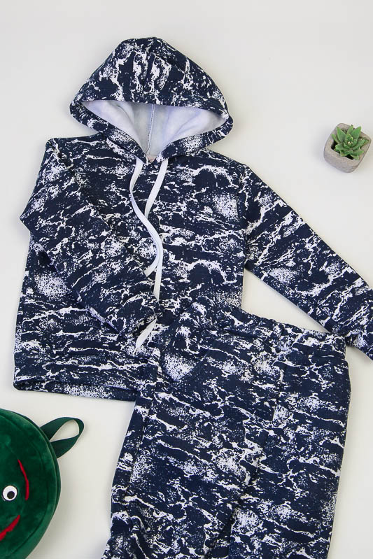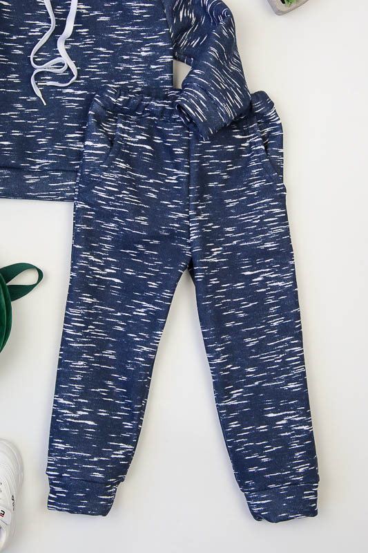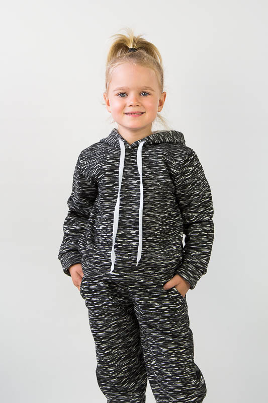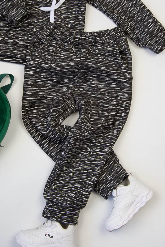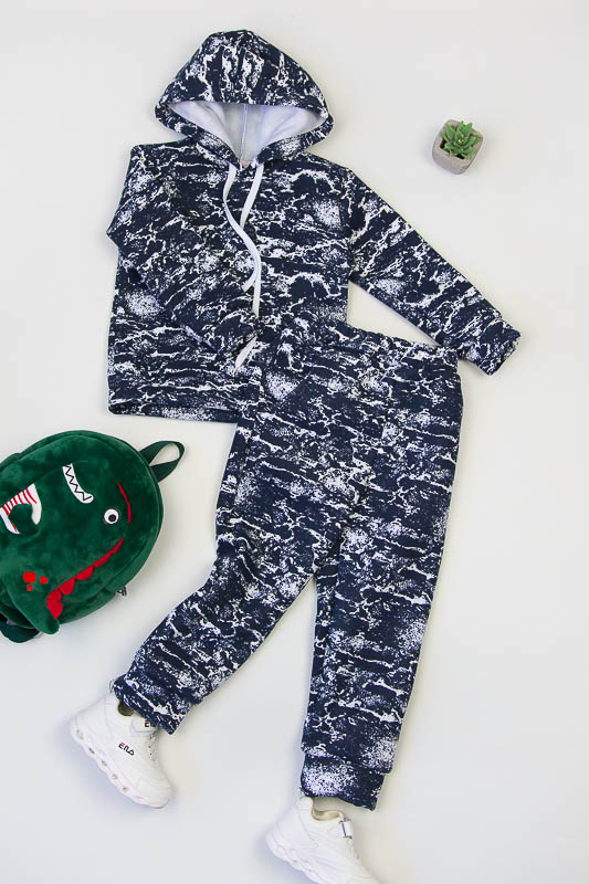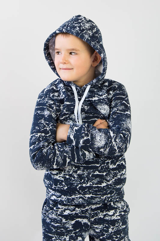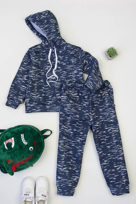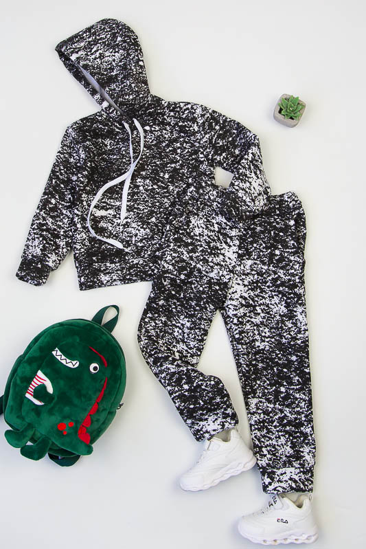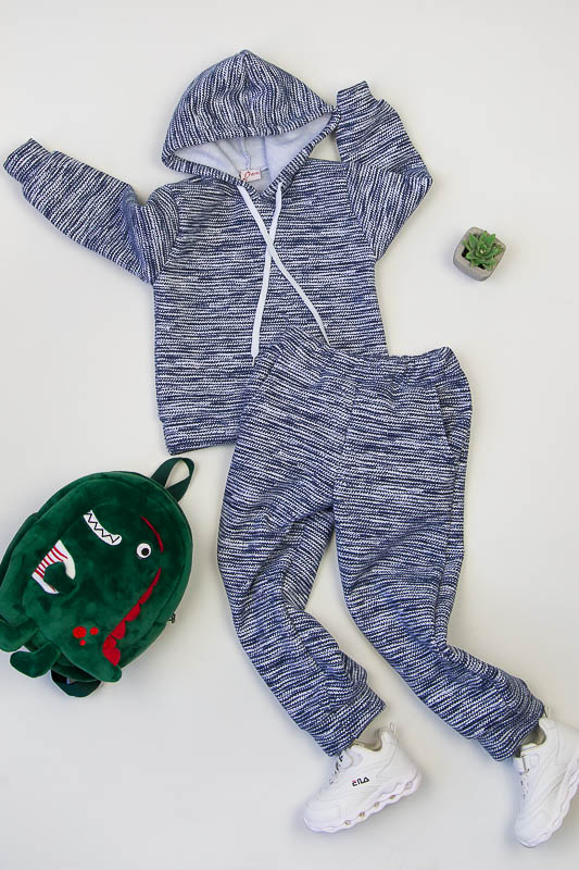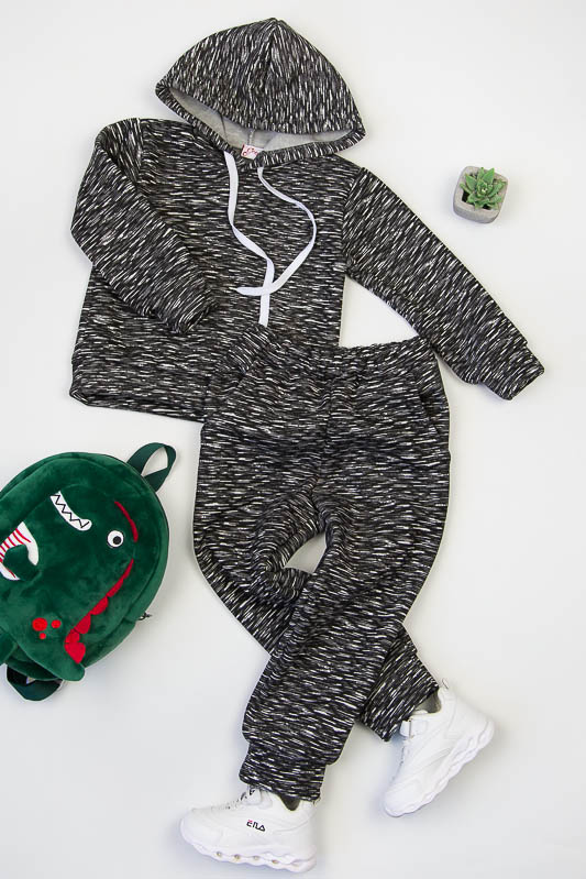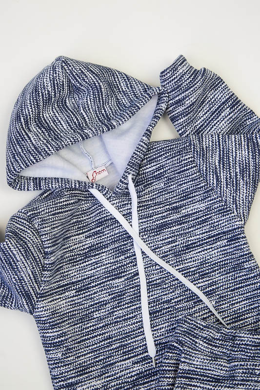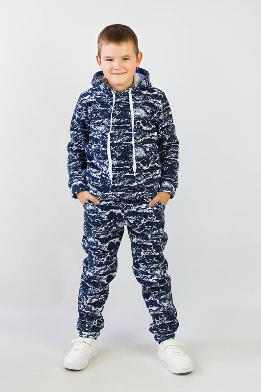 При настанні холодів в дитячому гардеробі обов'язково повинен бути теплий костюм. Він практичний та зручний для повсякденних прогулянок і активних ігор в прохолодну погоду. ТМ «Гном» пропонує вашому чаду одягнутися в наш яскравий з модним принтом костюмчик на товстому начісі, в якому буде зручно і комфортно. Костюм складається з худі з капюшоном і штанів на манжетах. Розмірний ряд дозволять вибрати свій варіант костюму. Модель виготовлена із щільної тринитки з начісом. Це тепле та м'яке трикотажне полотно з високим вмістом бавовни. Воно добре вбирає вологу і дає тілу можливість «дихати». Такий одяг не парить, а дарує тепло та відчуття затишку. Рекомендований догляд - це делікатне прання при температурі не більше 35°С, прасування тільки з лицьової сторони.
