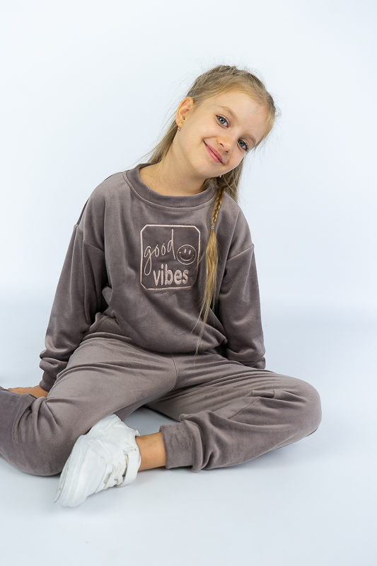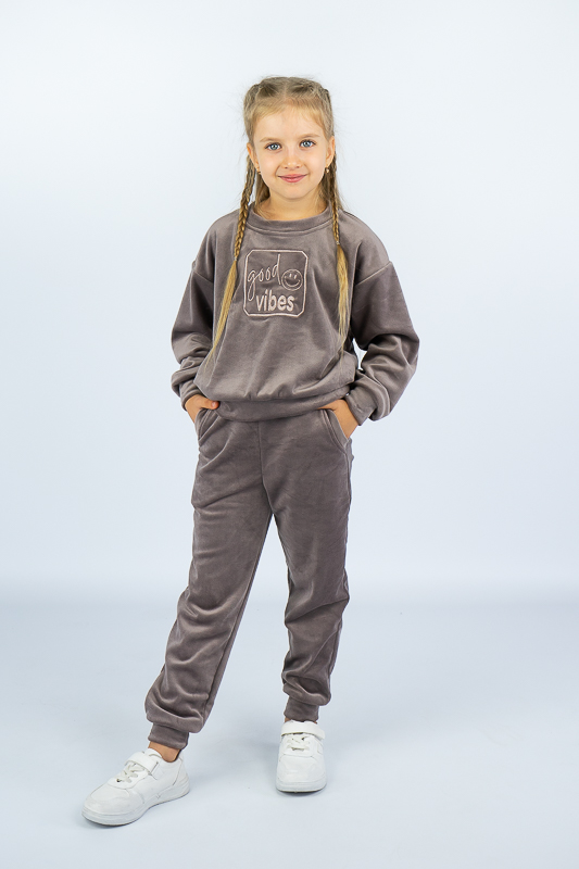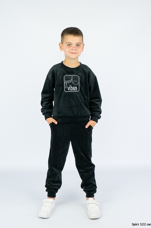 М'який трикотажний костюм - це комфорт та затишок для вашого чада. ТМ «Гном» пропонує костюм для дітей молодшого шкільного віку, який складається зі світшоту в стилі «oversize» та штанів з кишенями. Модель вільного крою, не стискує рух, при цьому тепла і комфортна. Костюм добре буде носитися як вдома так і на прогулянці. Виготовлений він з трикотажного велюру. З виворотного боку матеріал має флісову коротковорсову поверхню, яка забезпечує додаткове утеплення виробу. Матеріал не мнеться та не потребує складного догляду. Рекомендується делікатне прання в теплій воді.