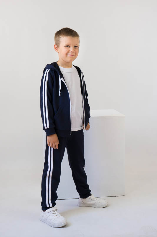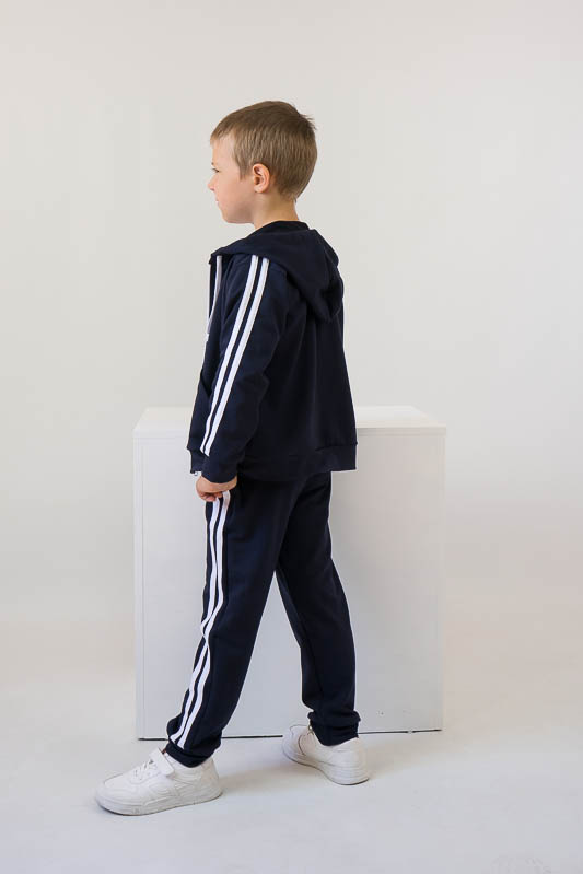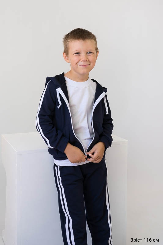 Зручний та яскравий спортивний костюм від ТМ «Гном» виготовлений для дітей від дошкільного до підліткового віку. Класична однотонна модель прикрашена деталями білого кольору - лампасами, змійкою та шнурком. Таке доповнення в поєднанні з вільним прямим кроєм робить модель стильною, модною, при цьому практичною та універсальною річчю. Виготовлений костюм із щільного та м'якого трикотажного полотна – двунитка. Ще його називають футер-стрейч. Поєднання базових властивостей трикотажу та ефекту від додавання у в'язку футерної нитки повідомляє матеріалу наступні властивості: добре вбирає вологу; ефективно пропускає повітря; має високу теплоощадну здатність; не утворює пилок (ковтунів); не витягується при носінні; простий у догляді. Виріб слід прати у теплій воді. Температури води, що дорівнює 30°C, буде достатньо для якісного прання матеріалу. Від прасування краще відмовитися або ж прасувати із застосуванням пару з виворітного боку.