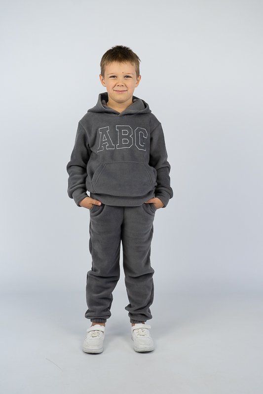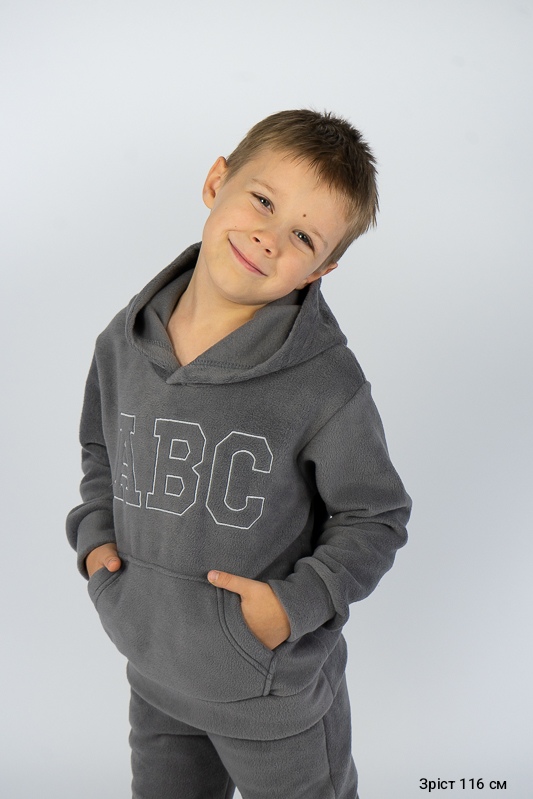При настанні холодів у дитячому гардеробі обов'язково має бути теплий костюм. Він практичний та зручний для повсякденних прогулянок та активних ігор у прохолодну погоду. ТМ «Гном» пропонує яскравий та комфортний костюм для дітей дошкільного та шкільного віку, що складається з комфортних штанів, капюшона та худі з кенгуру-кишенями. Передня частина кофти оздоблена нашивкою "АВС". Костюм пошитий з полотна - фліс. Температури води, що дорівнює 30°С, буде достатньо для якісного прання матеріалу.