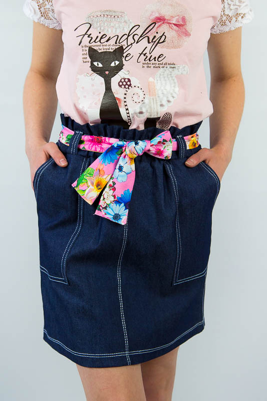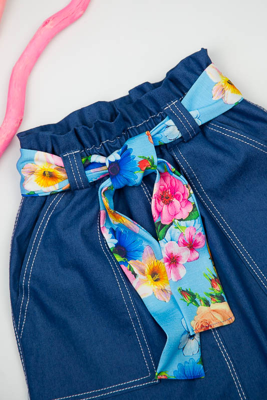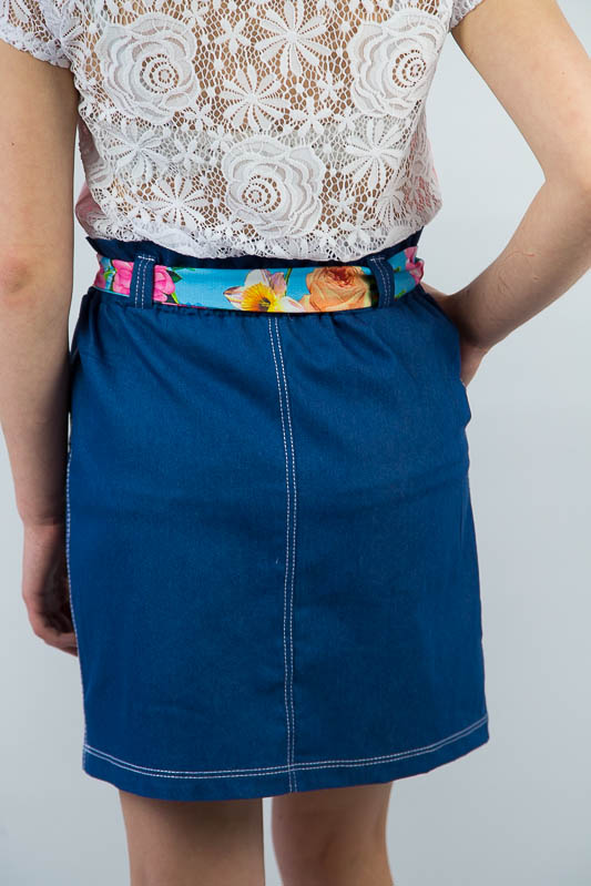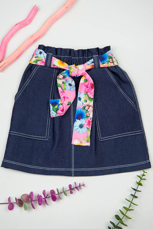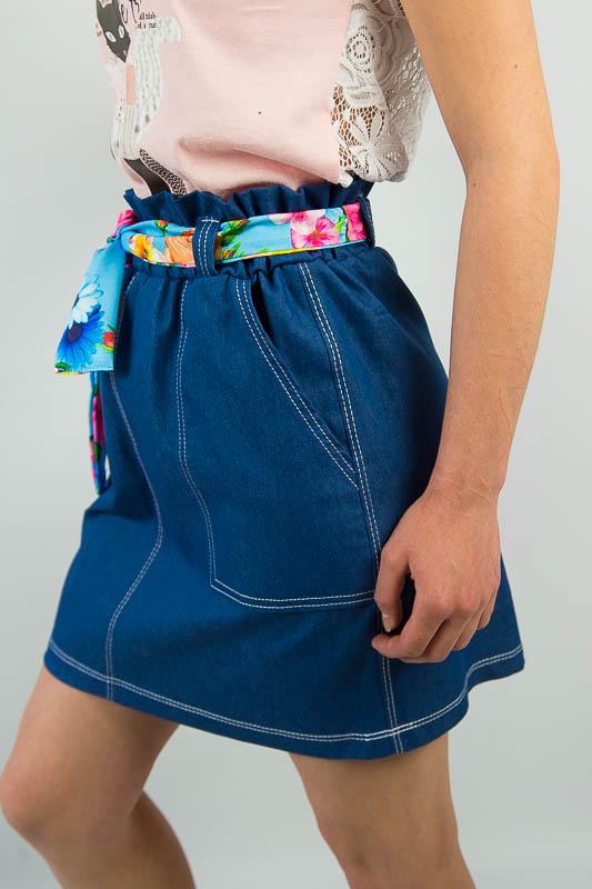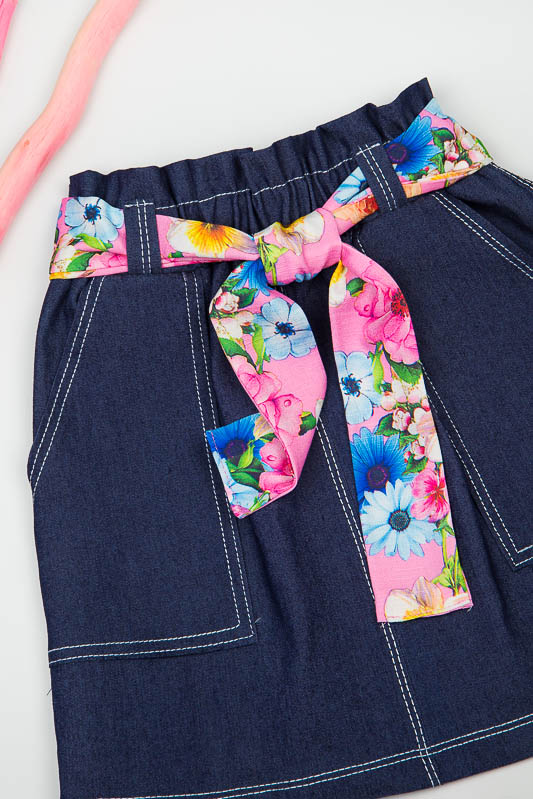 Легка літня спідниця від ТМ «Гном» виготовлена з тонкої джинсової тканини. Прямий крій і пояс на широкій резинці забезпечує комфорт і зручність в носінні, а обробна строчка і функціональні охайні накладні кишені додають виробу модний і стильний вигляд. Широкий пояс доповнюється знімним квітчастим пояском з оздоблювальної тканини, який без проблем можна прибрати або поміняти на інший варіант. Полегшений котон або просто джинс - це легка тканина, що складається з натуральної бавовни, що дає їй позитивні споживчі якості. Тканина добре вбирає вологу і пропускає повітря, володіє хорошими гіпоалергенними властивостями. Спідниця не вимагає особливого догляду. Прання звичайне, машинне, при 40 ° С, з використанням простого прального порошку. Щоб уникнути линьки, рекомендуємо перші кілька прань проводити окремо від іншої білизни.