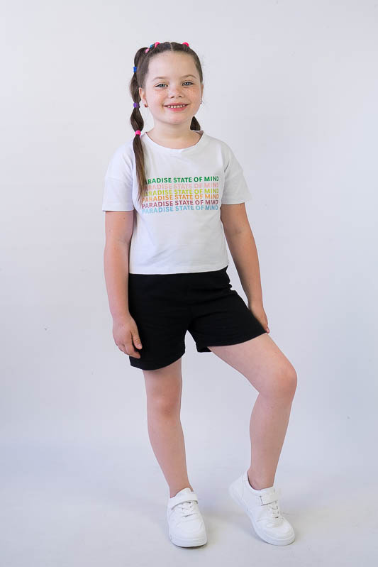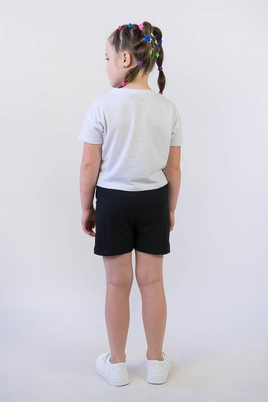 Дитячі шорти поішти з трикотажного полотна - кулір. Це найтонше трикотажне полотно. Не викликає алергію або подразнення. Кулір не втрачає свій зовнішній вигляд навіть після численних прань та не линяє і не облазить.