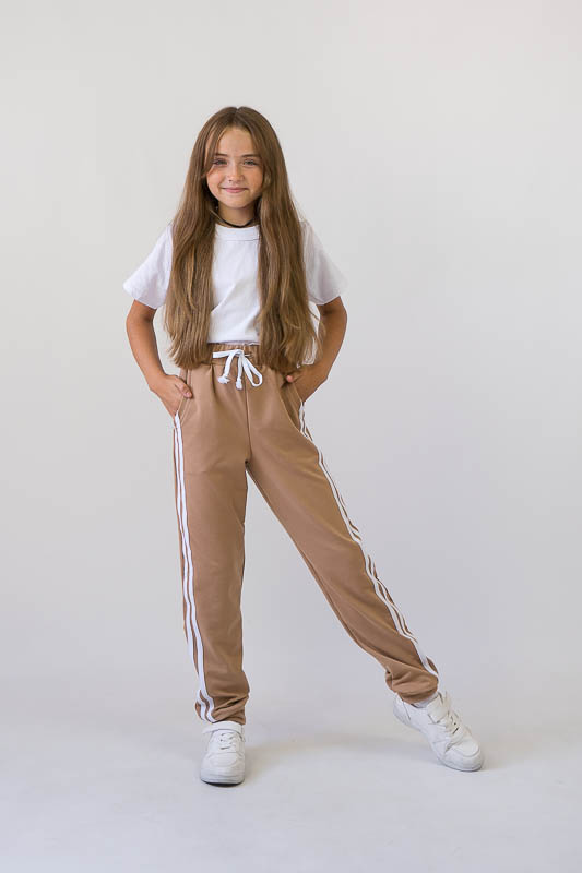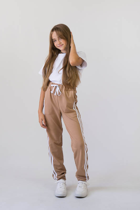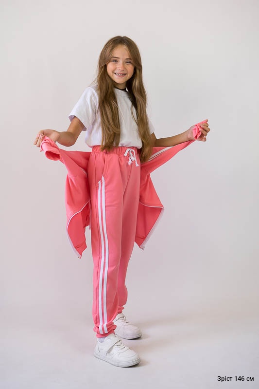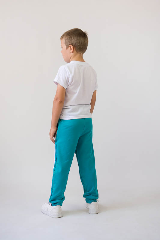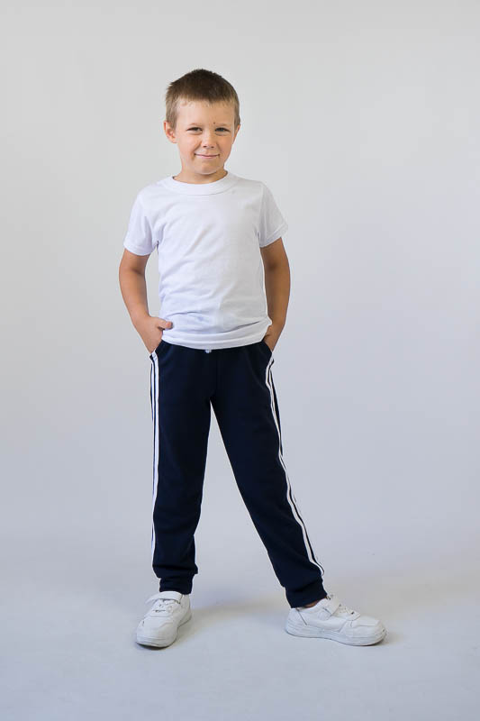 Спортивні штани від ТМ «Гном» виготовлені для дітей від дошкільного до підліткового віку. Зручний крій доповнюється широким поясом зі шнурком та боковими кишенями. Модель прикрашена білими лампасами. Ці елементи відмінно поєднуються з м’яким трикотажним матеріалом, додаючи виробу практичності та комфорту. Виготовлений костюм із щільного та м'якого трикотажного полотна – двунитка. Ще його називають футер-стрейч. Поєднання базових властивостей трикотажу та ефекту від додавання у в'язку футерної нитки повідомляє матеріалу наступні властивості: добре вбирає вологу; ефективно пропускає повітря; має високу теплоощадну здатність; не утворює пилок (ковтунів); не витягується при носінні; простий у догляді. Виріб слід прати у теплій воді. Температури води, що дорівнює 30°C, буде достатньо для якісного прання матеріалу. Від прасування краще відмовитися або ж прасувати із застосуванням пару з виворітного боку.