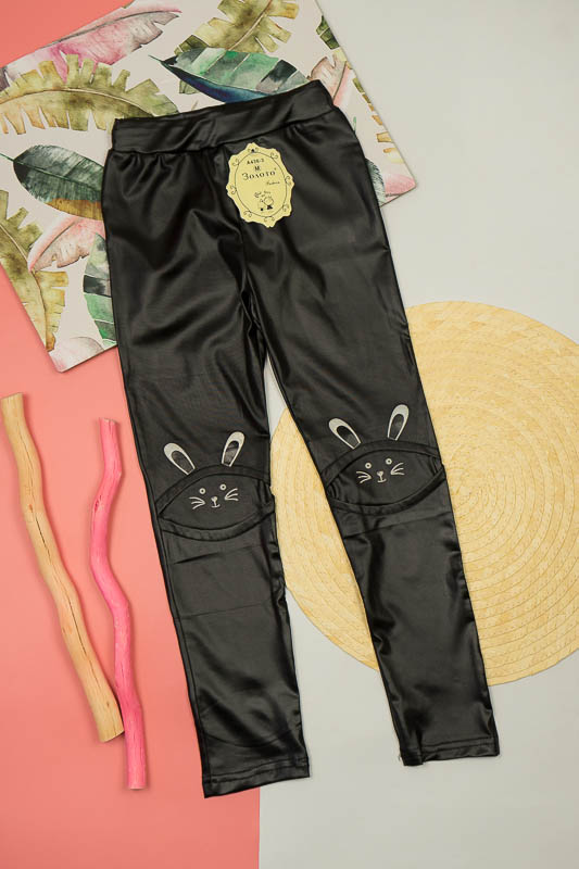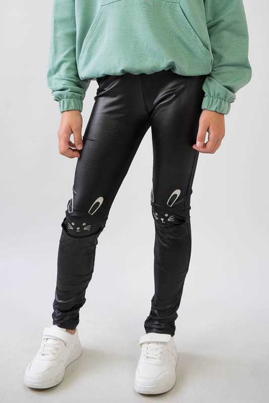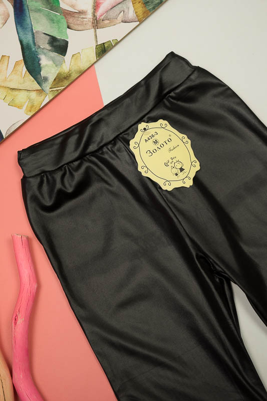 Лосини з еко-шкіри на дівчинці розміром М (зріст 128 см).