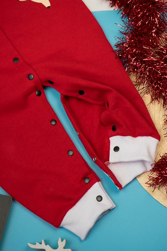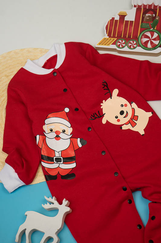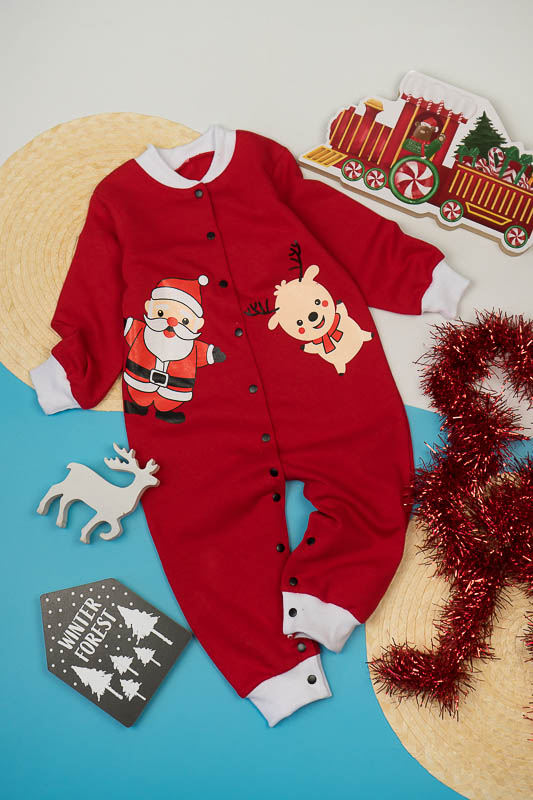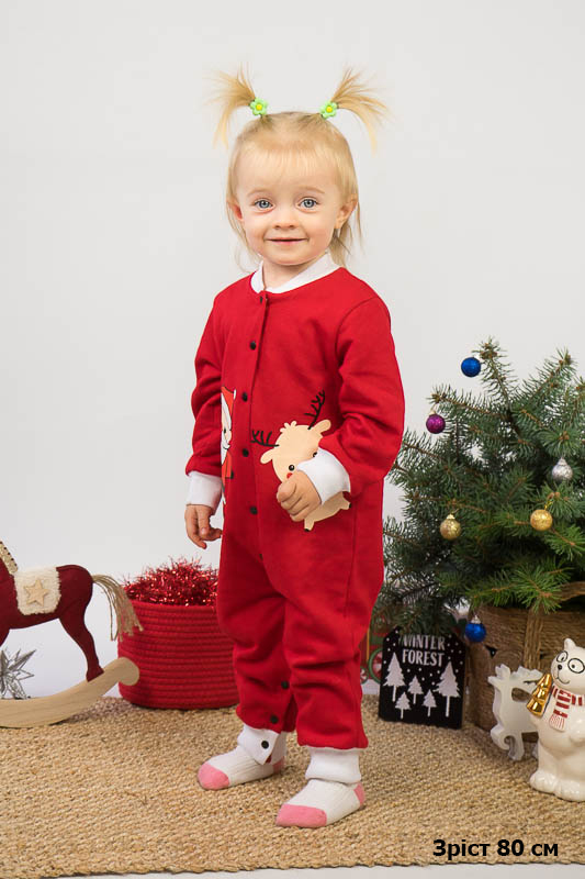 У Новорічні свята яскравий комбінезончик від ТМ «Гном» буде чудовою ідеєю нарядити вашого малюка. Кольорова палітра моделі виконана в символічних новорічних відтінках і прикрашена оригінальним тематичним малюнком. При цьому комбінезон м'який і комфортний, що важливо для маленьких діток. Для зручності по всій довжині виробу розташована застібка-кнопки, що переходить у внутрішній кроковий зріз. Краї ніжок і рукавів, а так само горловина оброблені м'яким еластичним матеріалом. Комбінезон виготовлений з трикотажного полотна - начісного футера. У цього полотна лицьова сторона гладка, а виворітна з м'яким легким начісом. Начос досить міцний, тому витримає будь-які навантаження, навіть самі інтенсивні рухи не викличуть заламів або складок на речах. Полотно стійке до появи затягувань та ковтунів. Вироби з такого матеріалу зручні, практичні і прослугує Вам дуже довго. Однак є деякі негативні моменти - матерія погано реагує на вплив прямих сонячних променів і високих температур при пранні. Тому, щоб виріб не дав усадку, прати його рекомендують при температурі не вище 30-40°C.