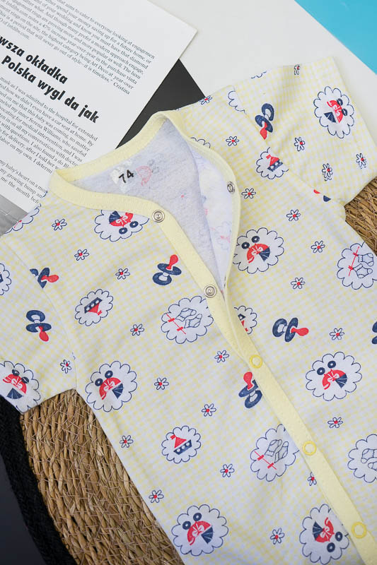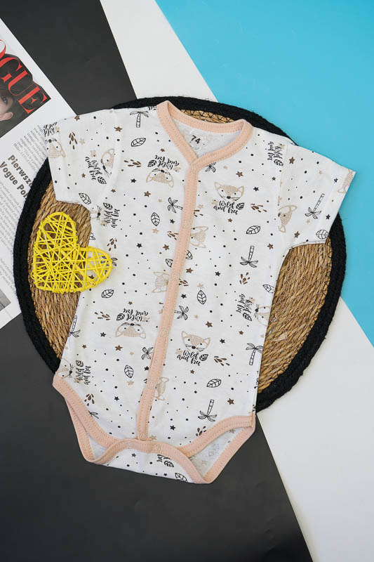 Ясельний бодік з коротким рукавом від ТМ «Гном» виготовлений для новонароджених і самих маленьких клієнтів до року. Він виконує функцію натільної білизни, тому виготовлений з тонкого матеріалу на натуральній бавовняній основі. Застібка - кнопки по всій довжині дозволяє швидко і без проблем переодягнути вашого малюка. Боді виготовлений з куліру - тонкого трикотажного полотна, яке не викликає роздратування на шкірі дитини. Відмінно переносить прання. Не линяє і не змінює колір. Зберігає свою первісну форму. Виріб рекомендується прати при температурі до 40°C в делікатному або ручному режимі, не використовувати відбілювачі або порошки з відбілювачами.