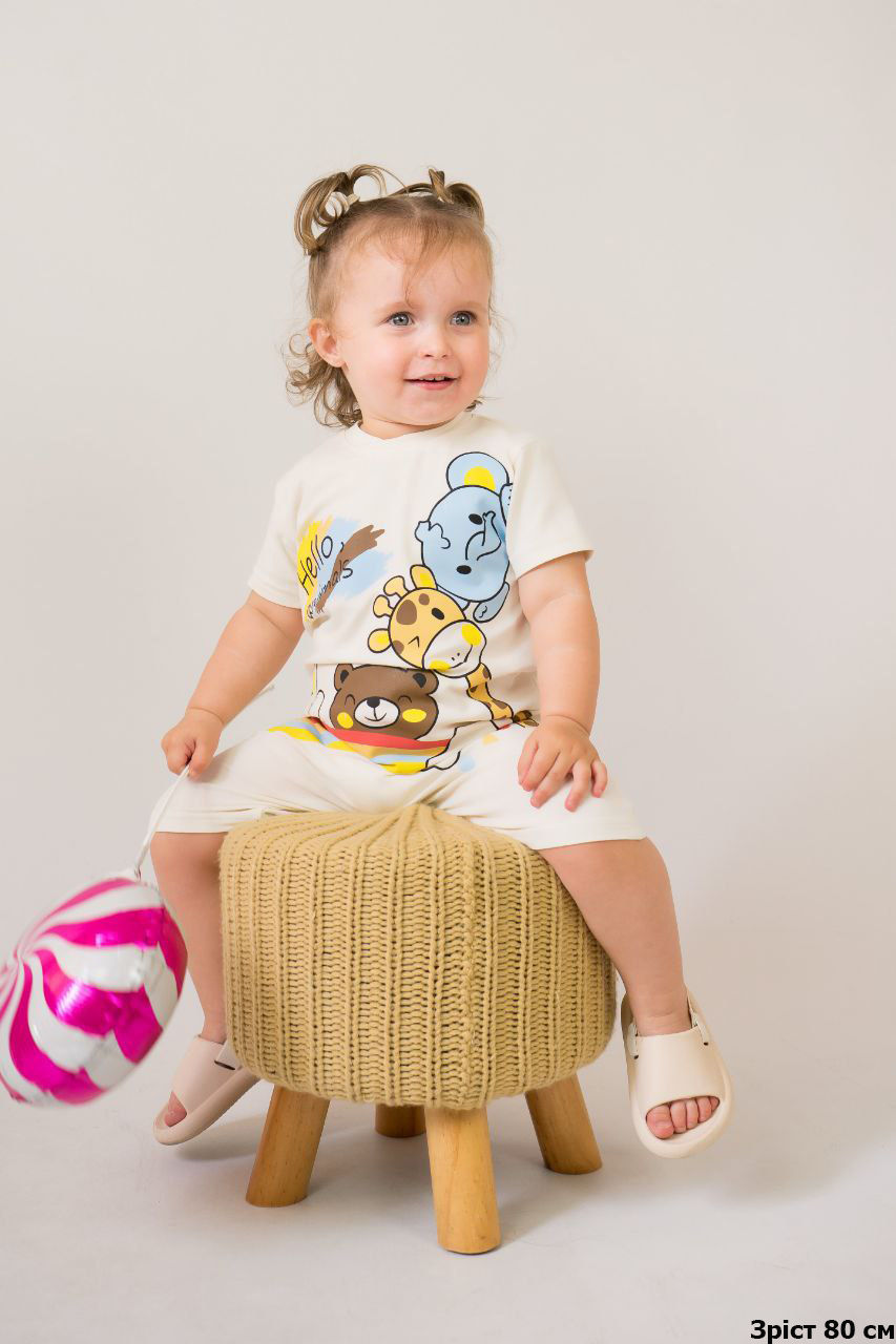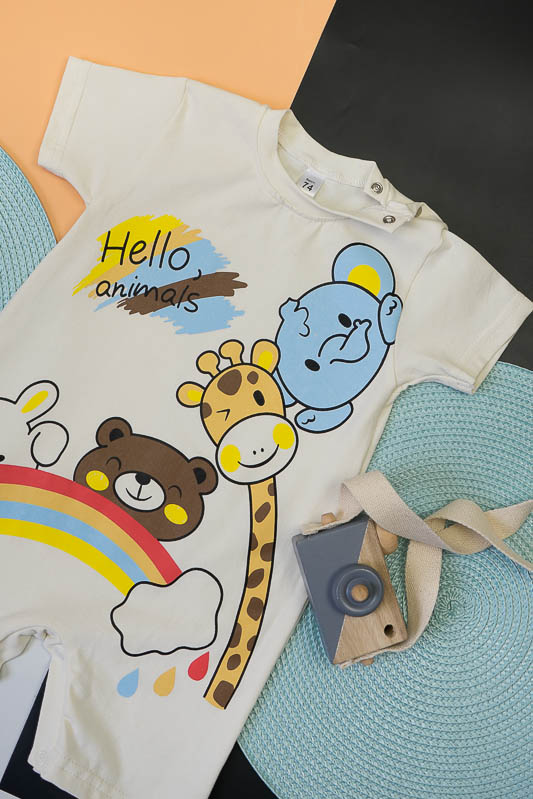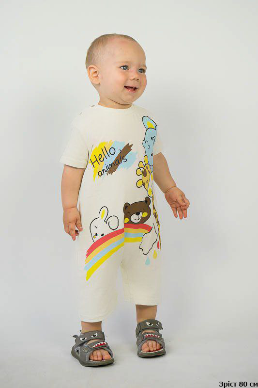 ТМ «Гном» пропонує стильний і комфортний літній комбінезон для самих маленьких, в якому ваша крихітка буде відчувати себе легко і вільно. Однотонна модель прикрашена яскравим малюнком. Вільний крій не обмежує рухи, по плечу та між ніжок знаходяться зручні застібки - кнопки, які дають можливість швидко і без проблем переодягнути малюка або поміняти підгузок. Комбінезон виготовлений з м'якого та легкого трикотажне полотно – фулікра, яке ще називають стрейчевим куліром. Його склад – це 95% бавовни та 5% лайкри. Полотно еластичне та приємне до тіла. Матеріал має гарну гігроскопічність, не викликає алергію. Виріб невибагливий у догляді, його можна прати при температурі до 40°C у делікатному або ручному режимі, не використовувати відбілювачі або порошки з відбілювачами.