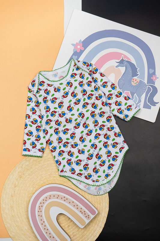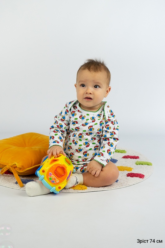 Боді ясельний пошитий з трикотажного полотна - футер. Футер, байка - це щільне трикотажне полотно, у якого лицьова сторона гладка, а виворітна - з м'яким теплим начосом. М'який футер дбайливо і ніжно піклується про шкіру малюка. В одязі з футера Вашій дитині буде тепло і затишно. Так як це натуральний матеріал, він пропускає повітря і дозволяє шкірі дихати. Рекомендується прати при температурі не більше 30 градусів. Склад - 100% бавовна.