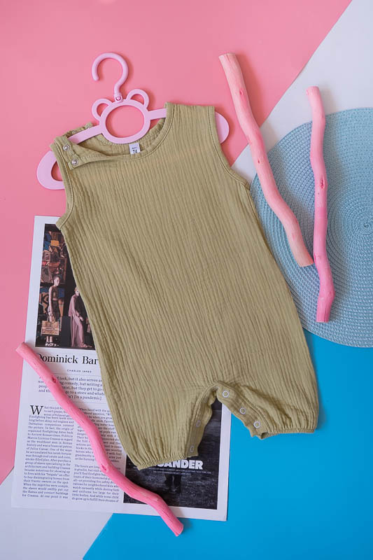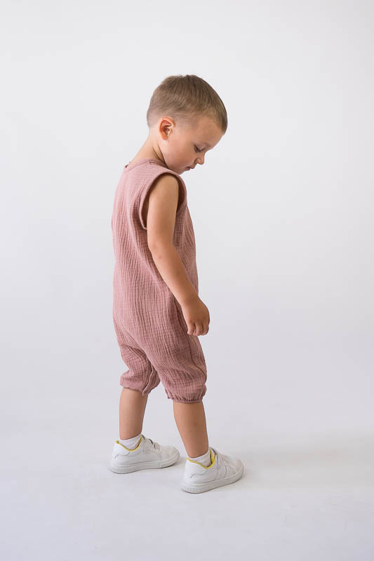 Легкий та практичний ясельний комбінезон від ТМ «Гном» - це комфортний одяг для малечі в спекотну погоду. Простий крой, зручна застібка на плечі поєднуються з тонким матеріалом – мусліном. Це бавовняна тканина, яку обирають для пошиття літнього одягу. Муслін – дуже тонкий, майже прозорий матеріал, дуже легкий та водночас міцний, добре вбирає вологу та швидко висихає, має надійний захист від ультрафіолетових променів. Щоб муслінові вироби служили вам довго та мали привабливий вигляд, за ними потрібно правильно доглядати, а саме: прати в теплій воді при температурі не більше 40°C; перед сушінням добре струснути та розправити; довго не сушити на сонці; прасувати в напівсухому вигляді з використанням пару.