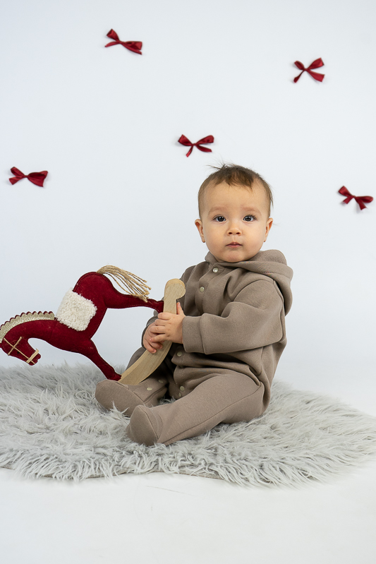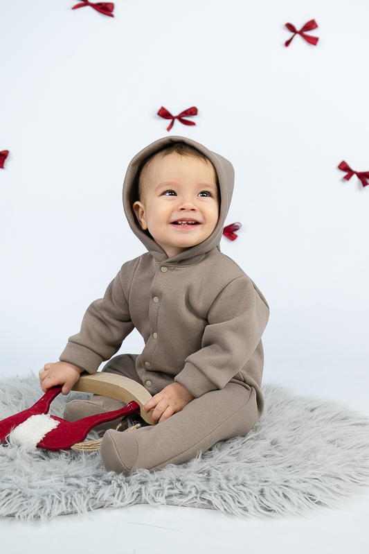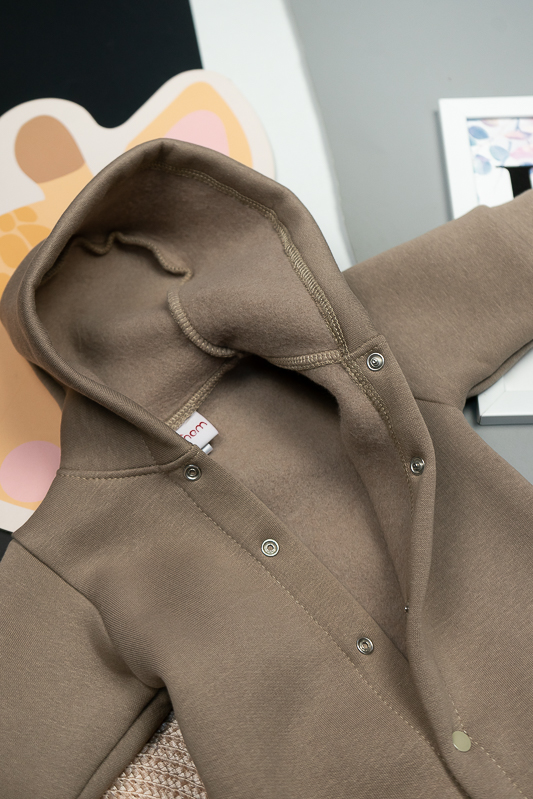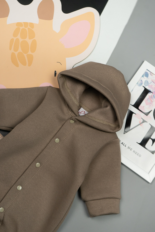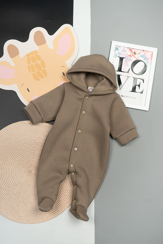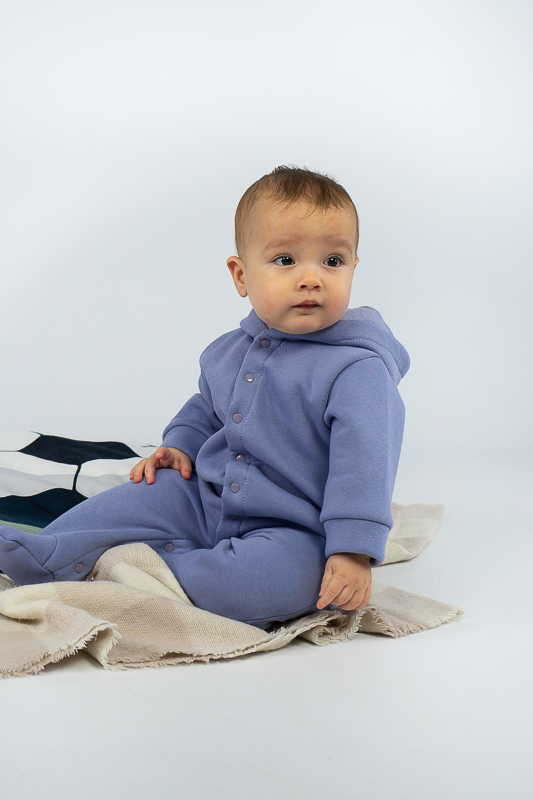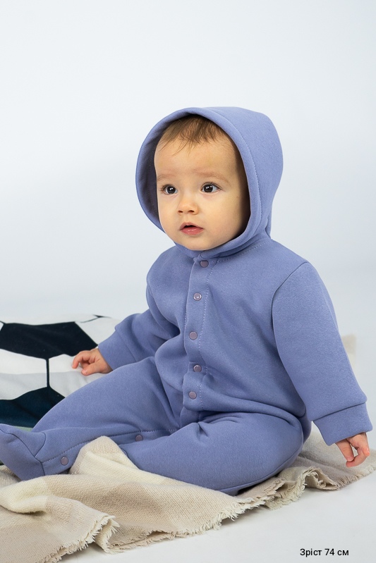 У м'якому та затишному комбінезоні від ТМ «Гном» ваш малюк почуватиметься в теплі та комфорті. Закриті ніжки, зручний капюшон захистять його від холодного вітру, а застібка кнопки, що проходить по всій довжині комбінезона та між ніжок, дає можливість без проблем і сліз одягнути вашу дитину. Модель виготовлена із щільної тринитки на флісі. Це тепле та м'яке трикотажне полотно з високим вмістом бавовни. Воно добре вбирає вологу і дає тілу можливість «дихати». Такий одяг не парить, а дарує тепло та відчуття затишку. Рекомендований догляд - це делікатне прання при температурі не більше 35°C, прасування тільки з лицьової сторони.