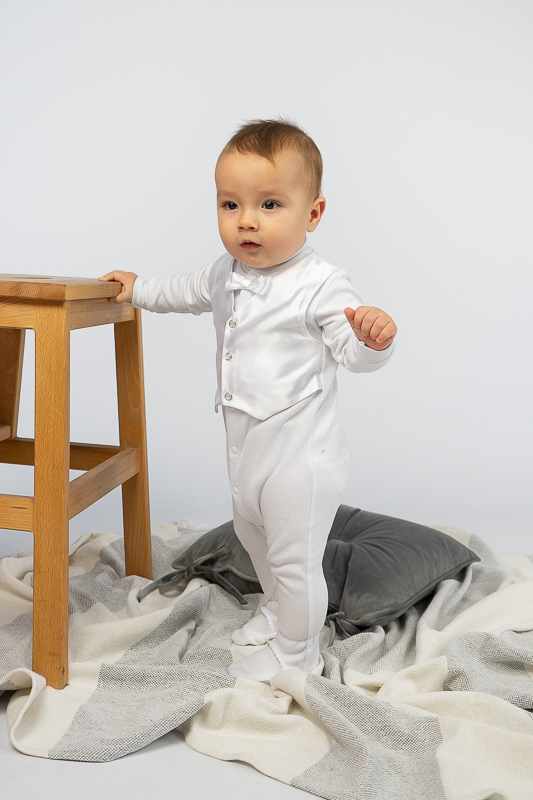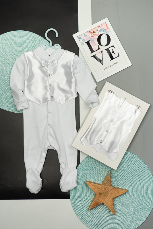 У цьому комбінезоні від ТМ «Гном» ваш малюк виглядатиме як малий джентльмен. Доповнює образ жилетка на блискучих кнопках та невеликий атласний метелик. Такий комбінезончик чудово підійде як на виписку з пологового будинку, так і на хрестини. Для зручності по всій довжині виробу і між ніжками знаходиться застібка - кнопки. Комбінезон виготовлений з щільного і приємного на дотик трикотажного матеріалу - інтерлок, який складається з бавовняного натурального волокна. Полотно еластичне (зберігає форму навіть при сильному розтягуванні), міцне, стійке до зносу, екологічне (не викликає алергію навіть у маленьких дітей, добре пропускає повітря, дозволяє шкірі дихати). Однак потрібно бути акуратним при пранні, а особливо з температурою води. Не дотримання правильного режиму може спричинити усадку. Рекомендований догляд за виробом: ручне або машинне прання на малих обертах при температурі не вище 30°C із застосуванням м'якого миючого засобу, прасування при невисокій температурі з виворітного боку. До комбінезона додається подарункова коробка.